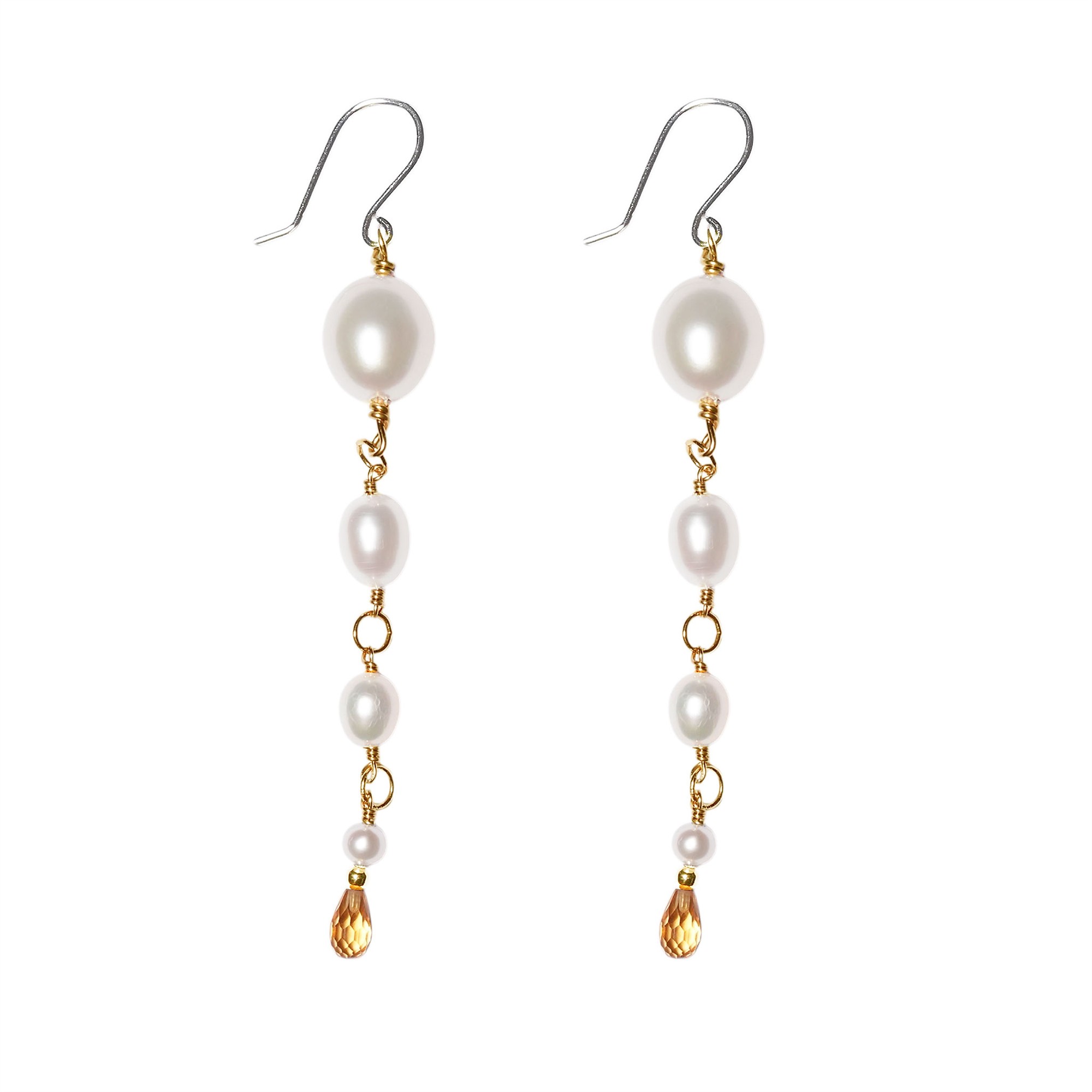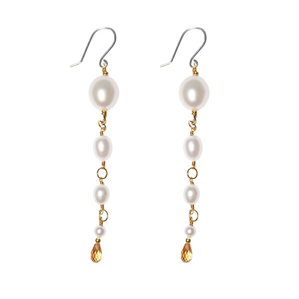 Rhodineret/forgyldt øreringe med ferskvandsperler & citrin Pr.par from San - Links of Joy