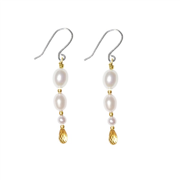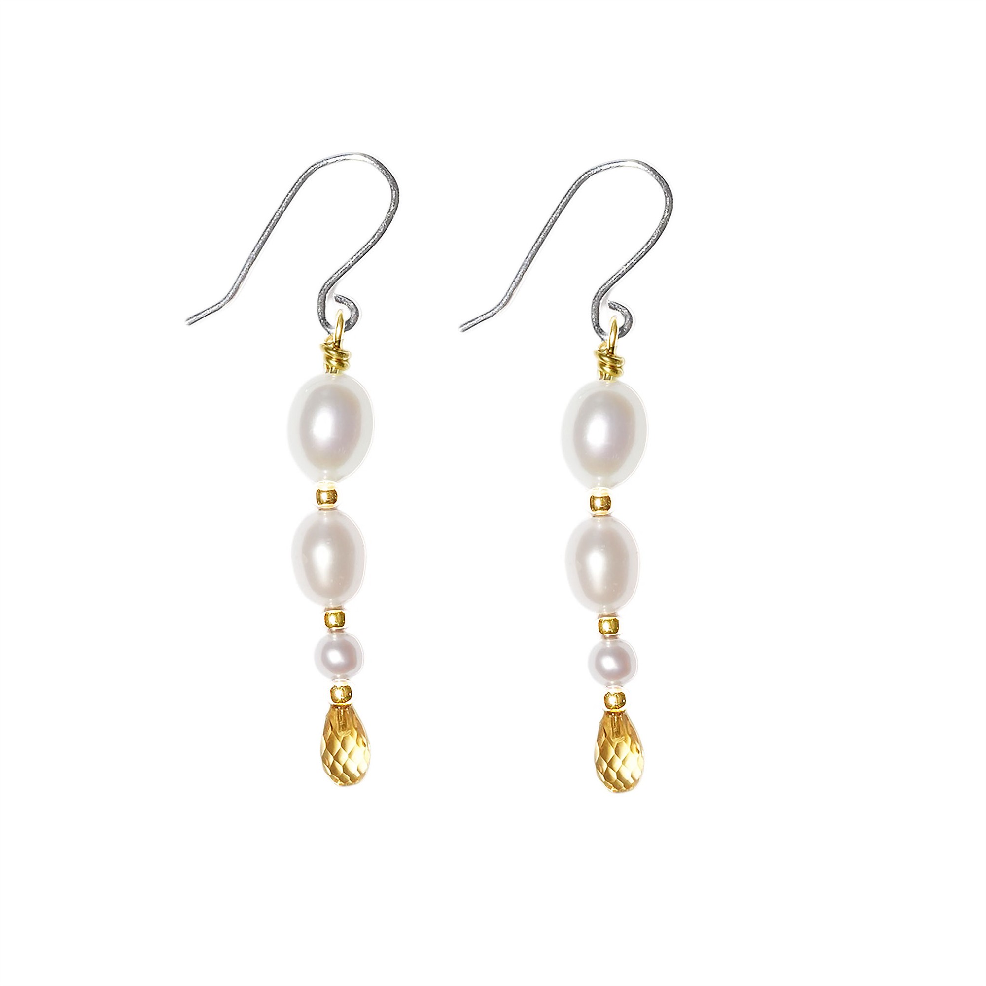 Rhodineret/forgyldt øreringe med Ferskvandsperler & Citrin Pr.par from San - Links of Joy