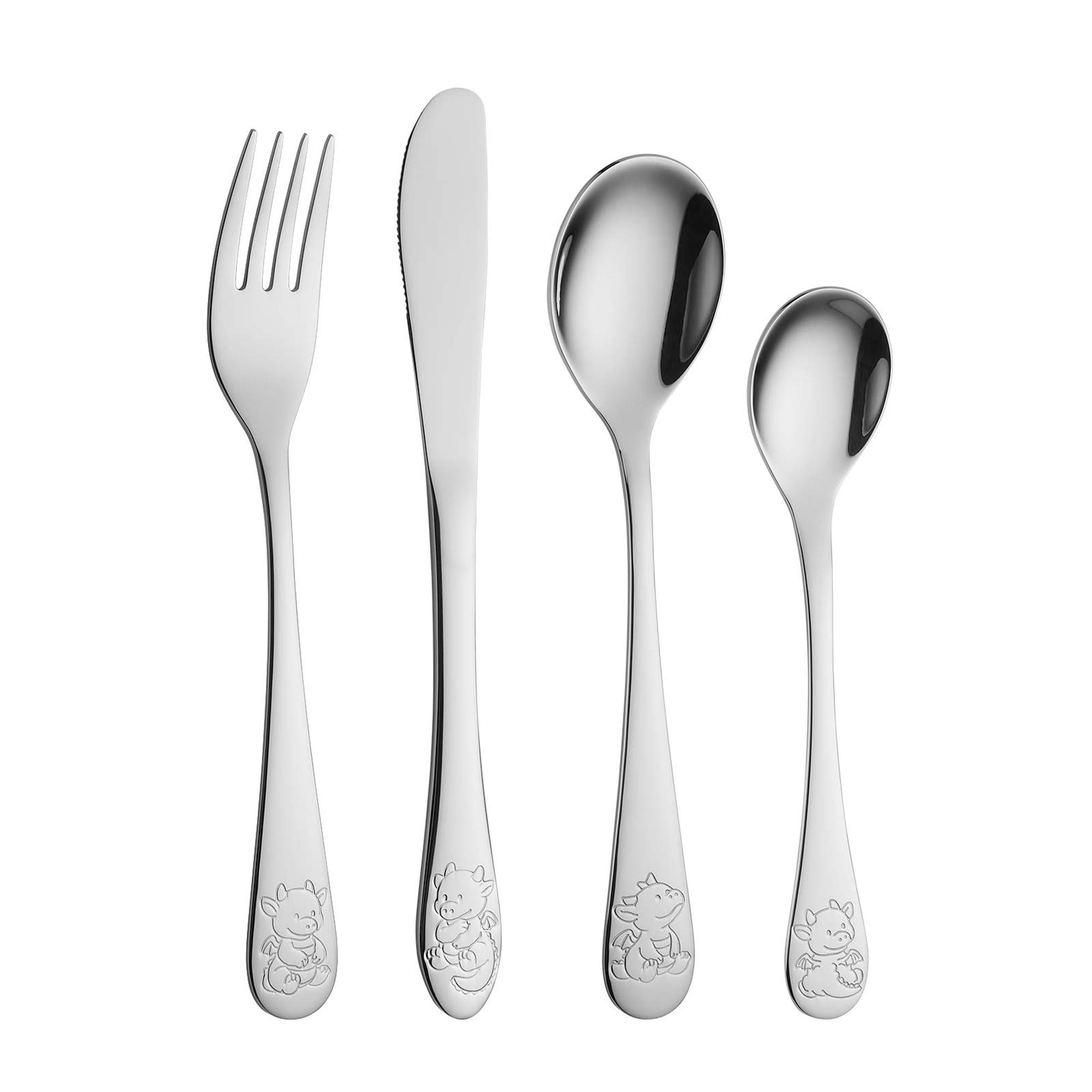 Rustfrit stål bestik m. drage inkl. bamse from Noa Kids
