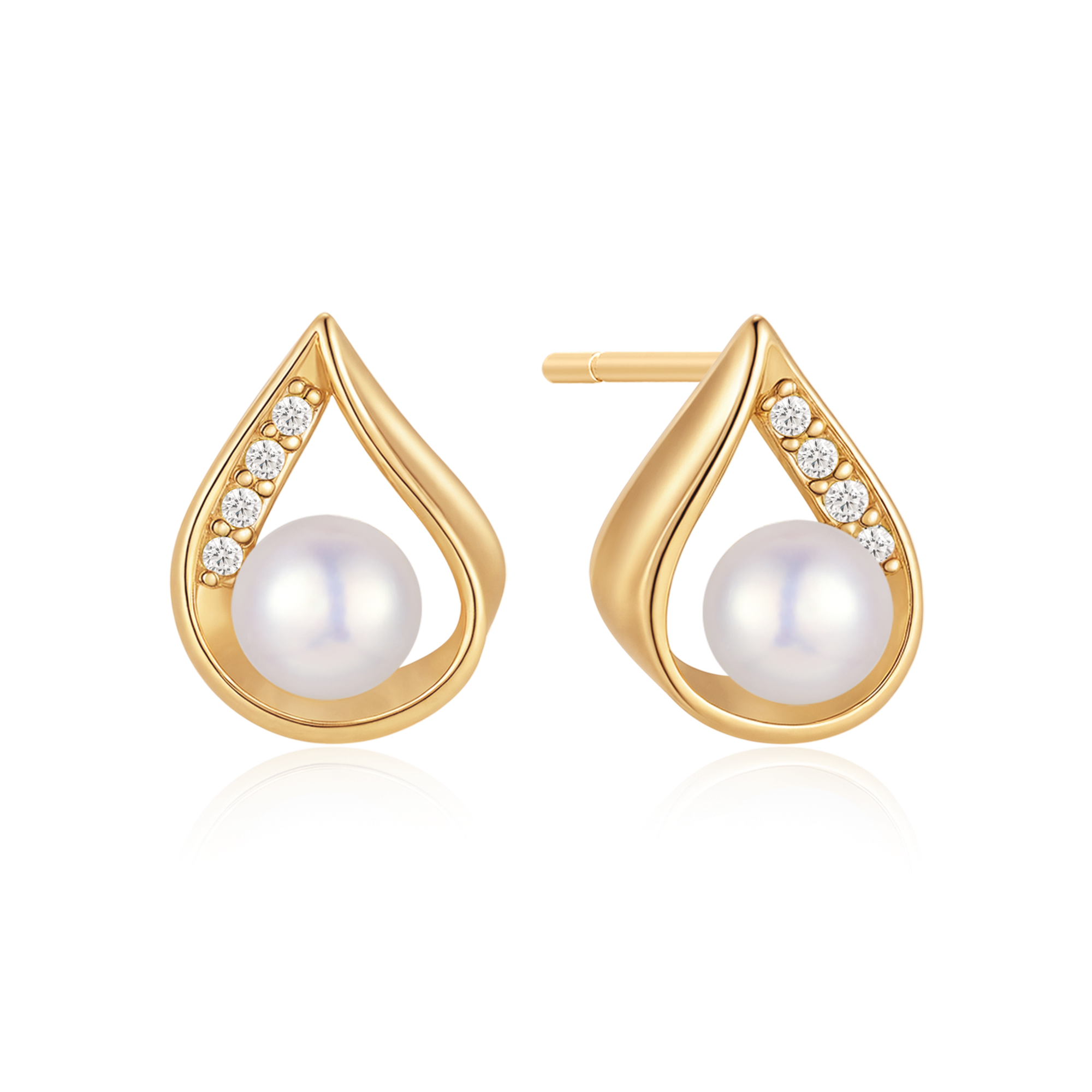 These elegant teardrop earrings combine timeless sophistication with contemporary design. At their heart, lustrous 4mm freshwater pearls add a touch of classic refinement, perfectly nestled within the graceful silver-gilt curves. The luxurious gold-toned finish creates an upscale look while keeping these pieces delightfully accessible. Along one side of each 10 x 7.8 mm teardrop, five sparkling synthetic cubic zirconia stones catch the light beautifully, adding just the right amount of brilliance to complement the pearl's natural glow. The thoughtful design balances delicate details with everyday wearability.