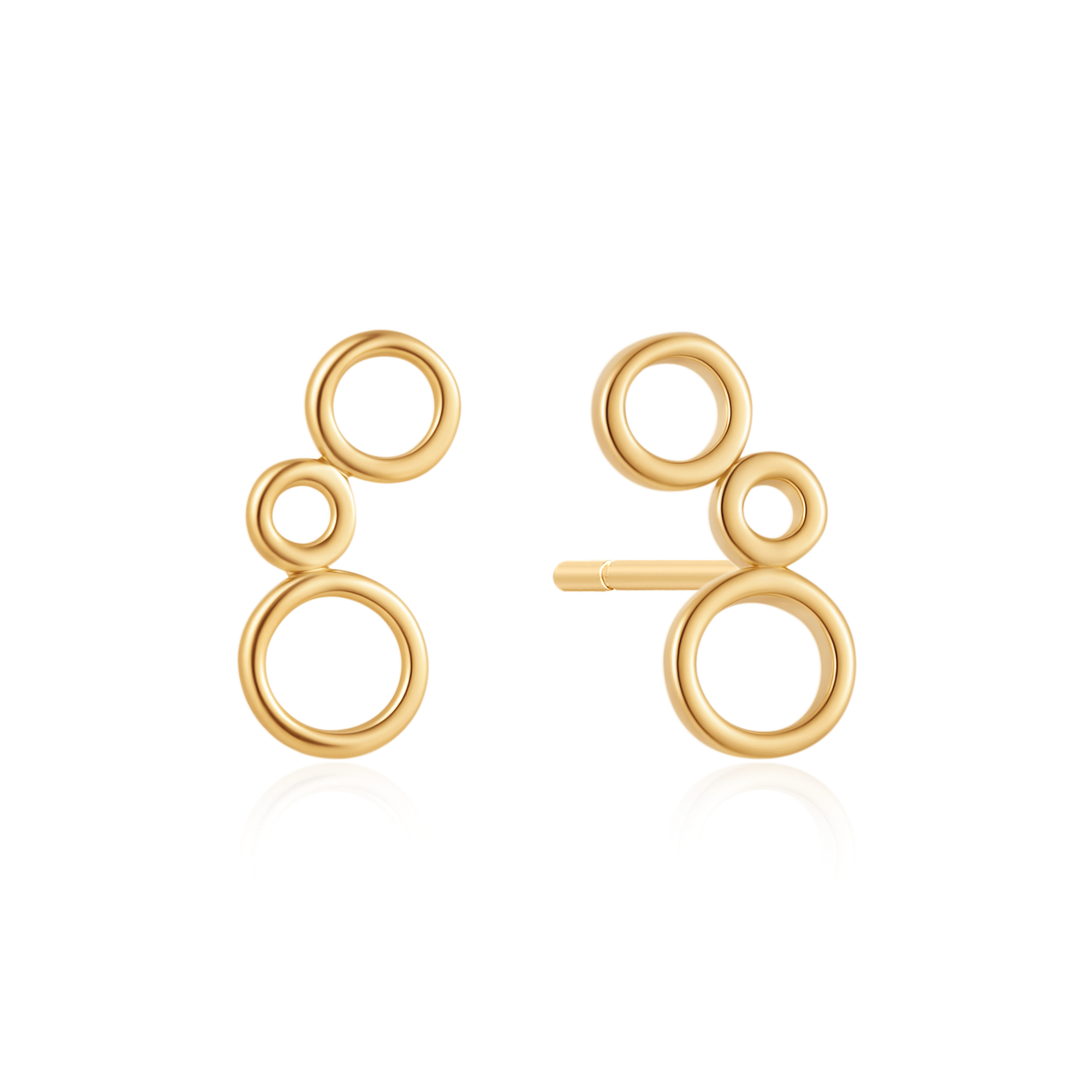 Sølvforgyldt earrings with three interconnected circles, largest at bottom, polished finish.