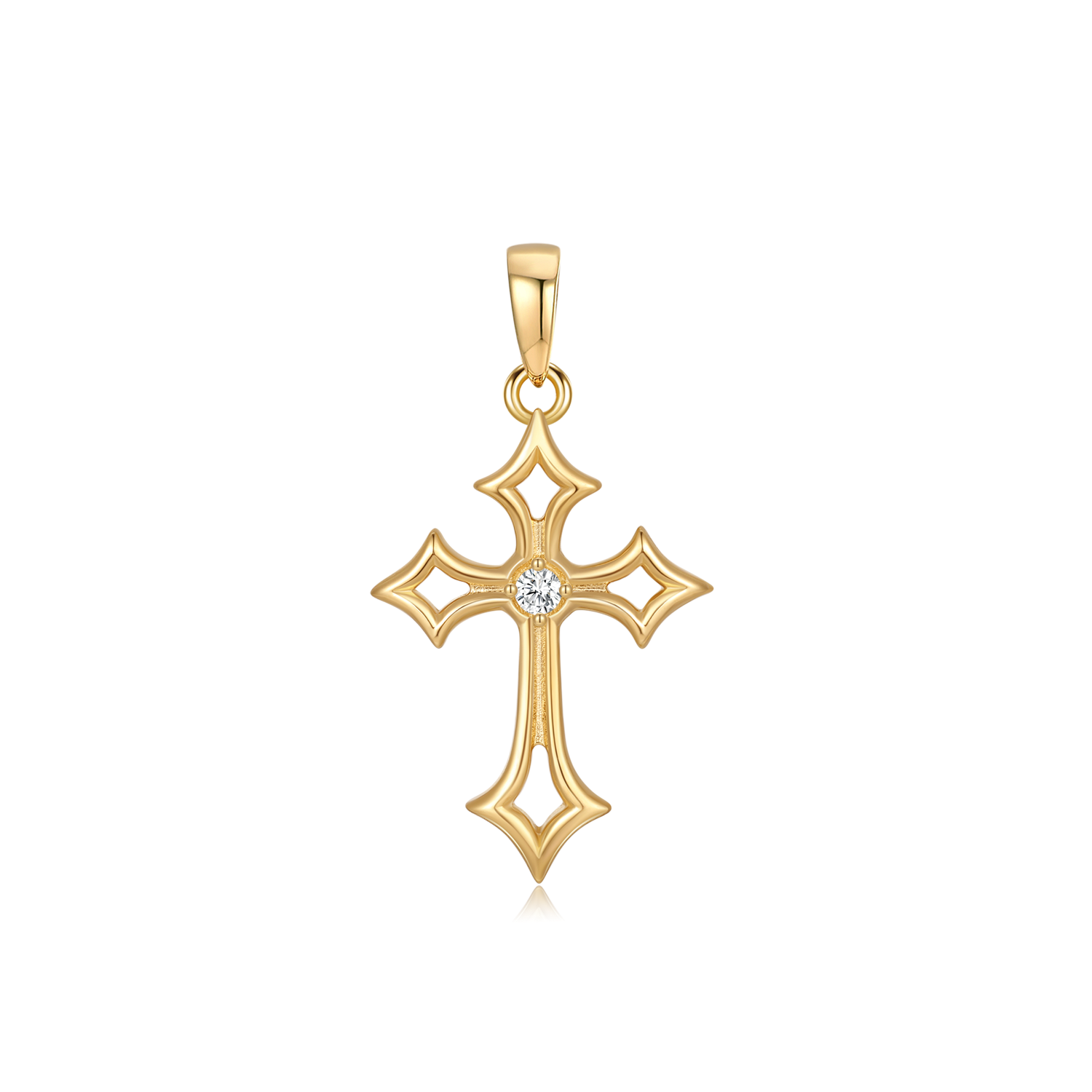 This cross pendant features a silver-plated finish and triangular ends. The surface is durable, and the cubic zirconia stones are placed at the center of the cross. The pendant can be a practical solution for various occasions.