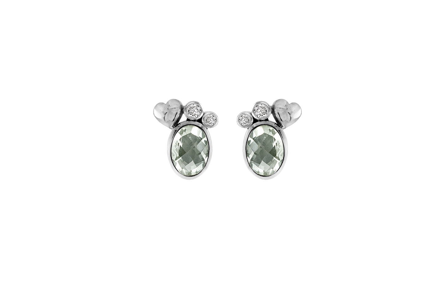 The Sølv ørestik - Lovely features an exquisite 7x5 mm prasiolite stone as its centerpiece, creating a stunning focal point with its soft green hue. Each earring showcases genuine white topaz accents and a delicate heart-shaped design, perfect for making a sophisticated statement at formal events or enhancing romantic evening attire.
