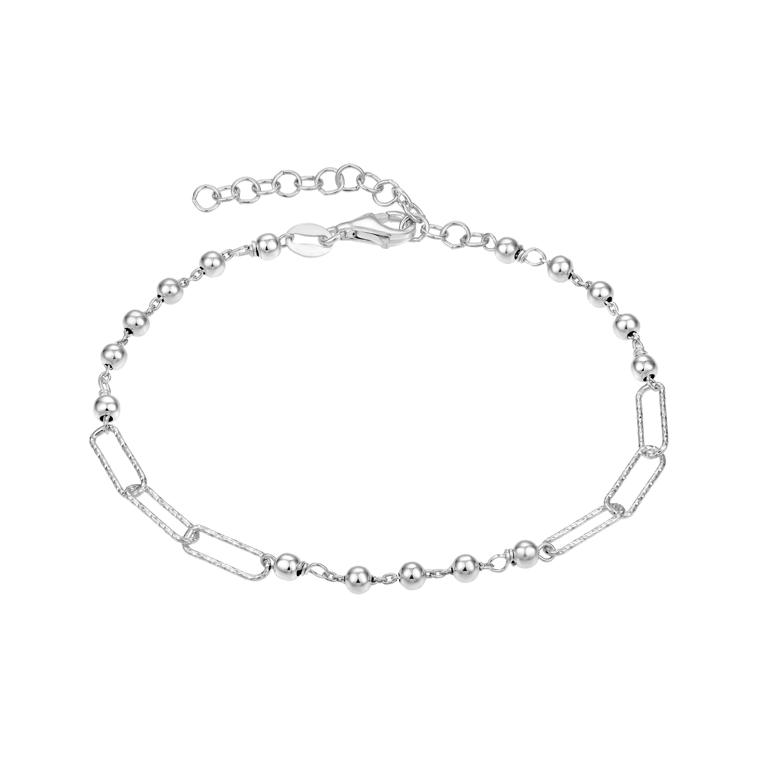 Sølv armbånd rhodineret med kugler og 3 x 3 aflange led.