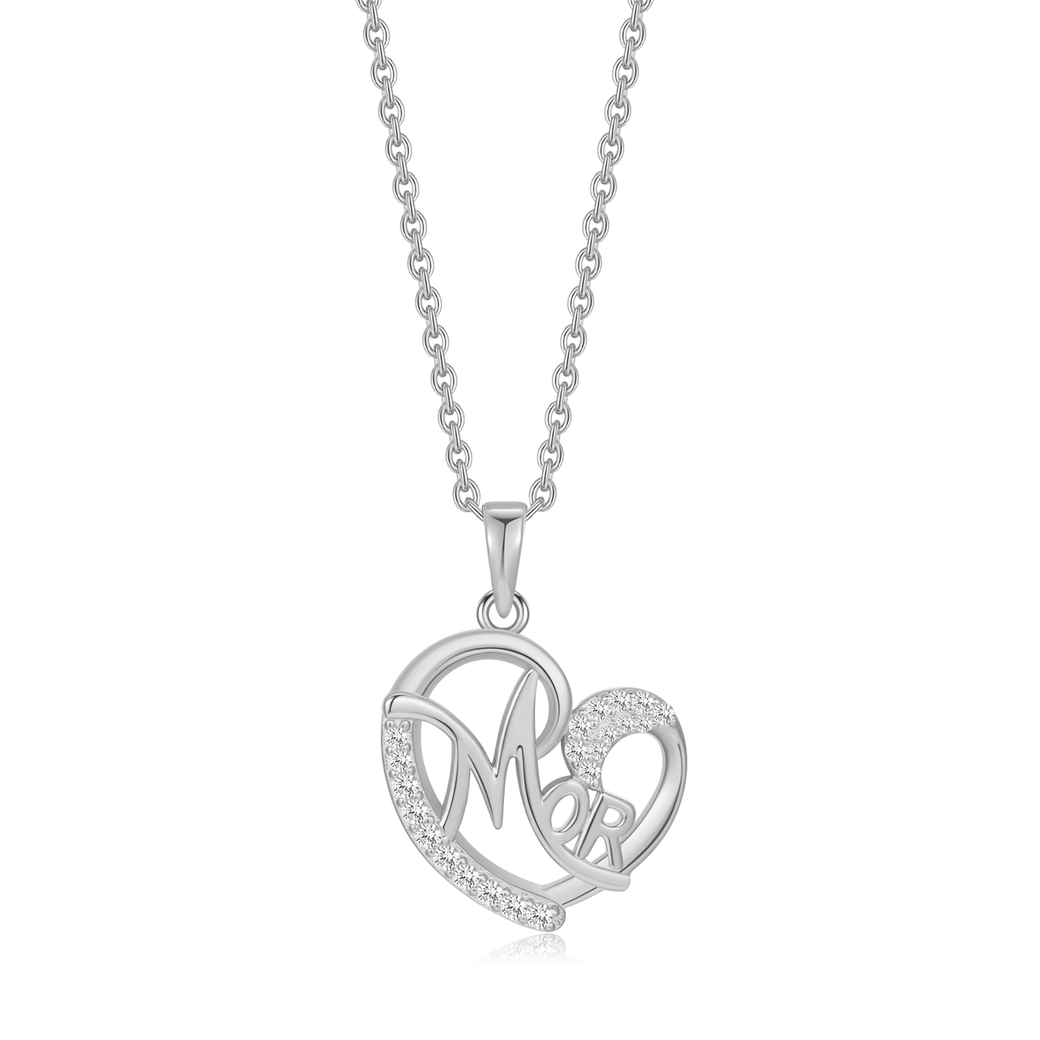 Sølv halskæde rhodineret "Mor" med syntetiskecubic zirconia.