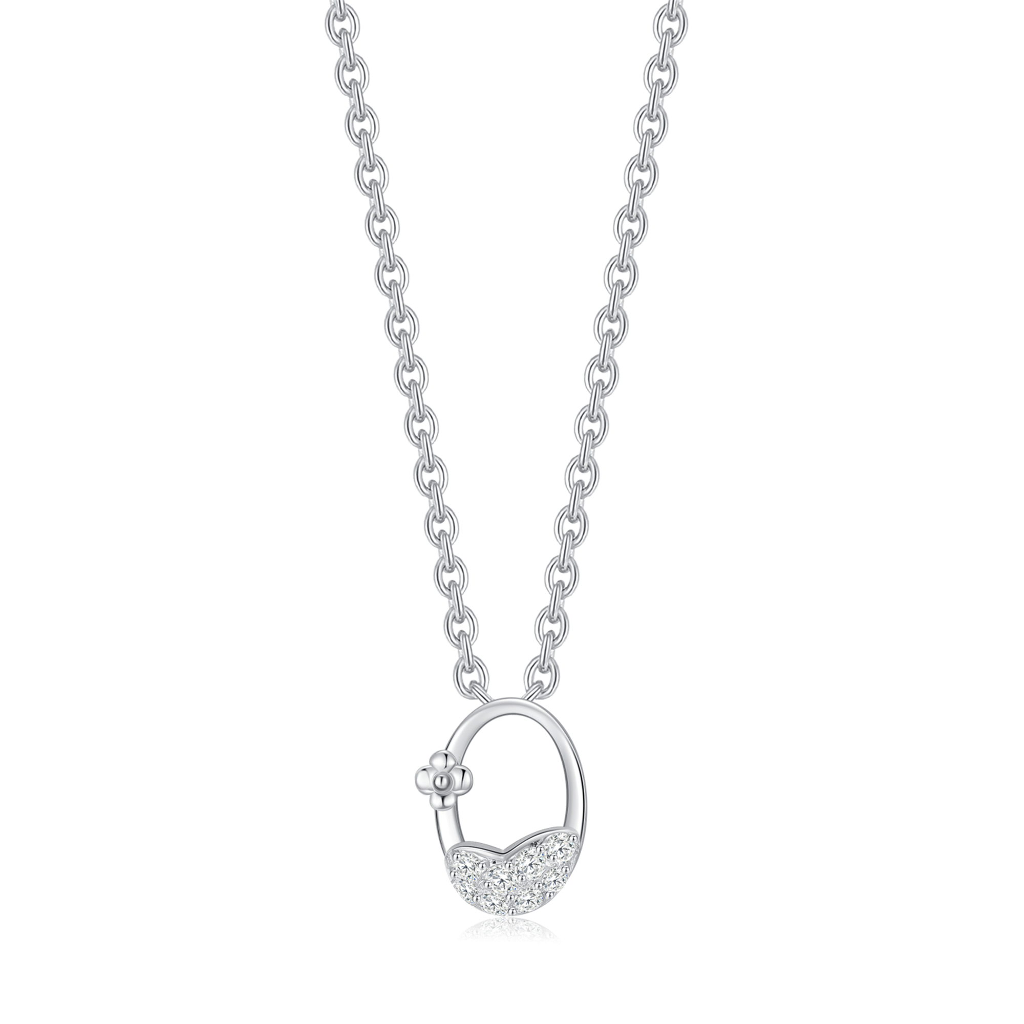 Sølv halskæde rhodineret oval med syntetiske cubic zirconia i kanten.