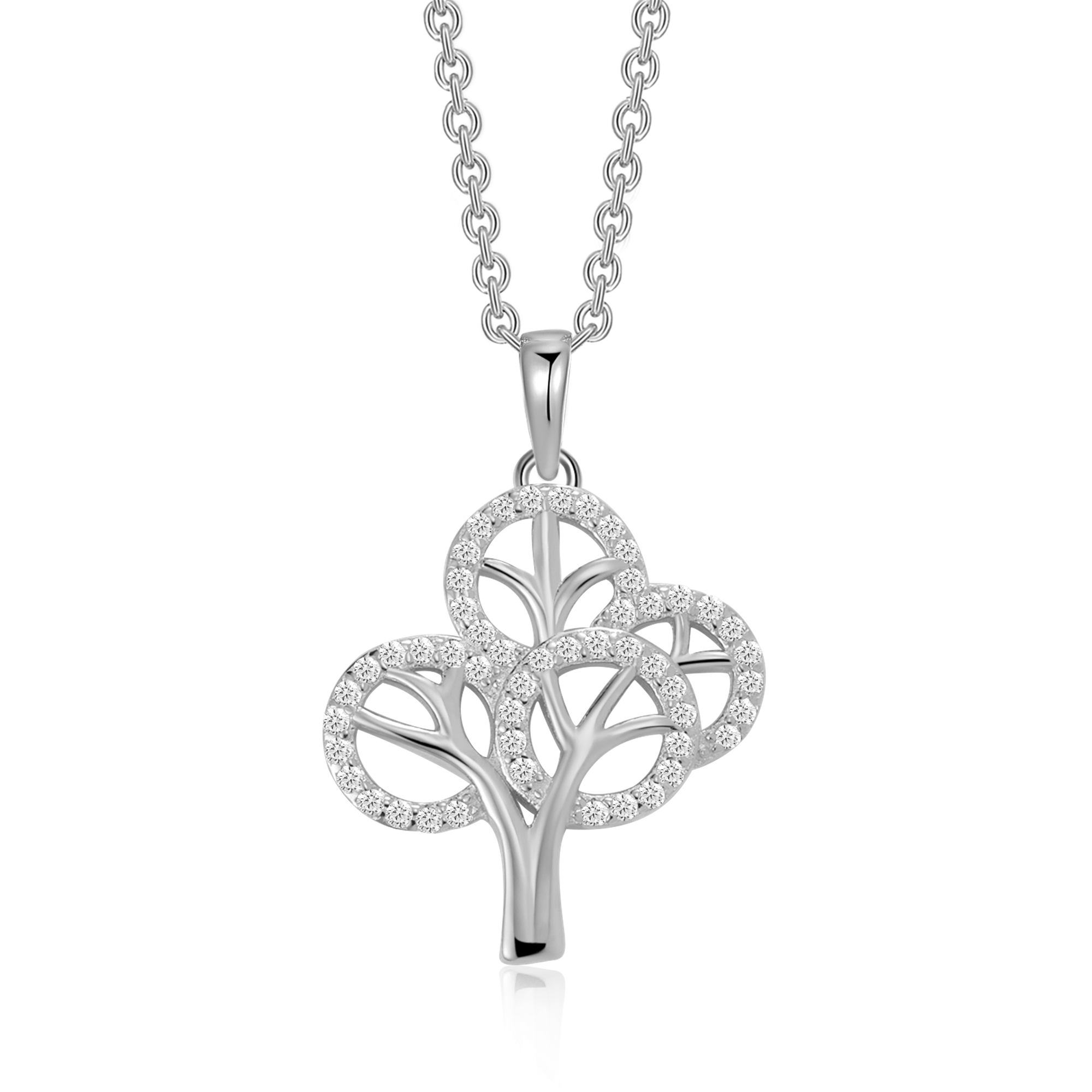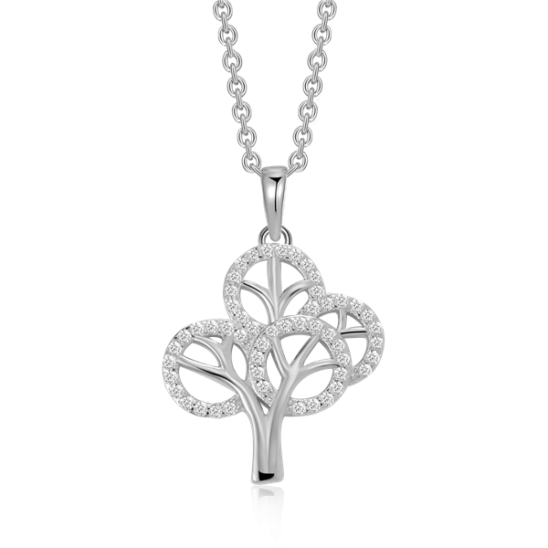 Sølv halskæde rhodineret livets træ med syntetiske cubic zirconia.