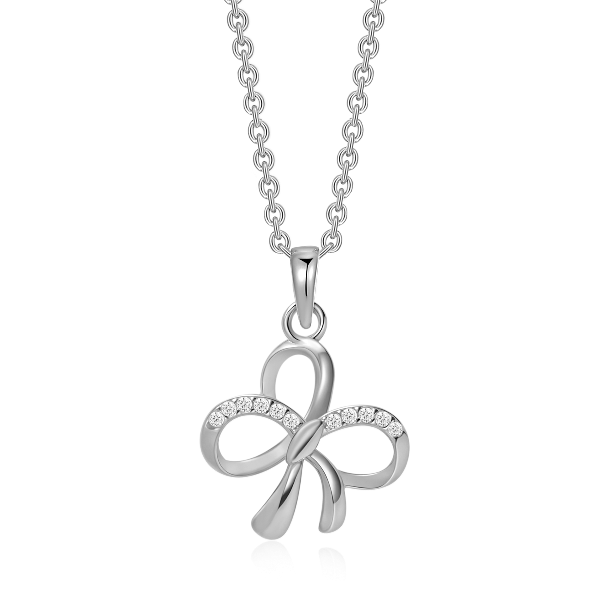 Sølv halskæde rhodineret sløjfe med syntetiske cubic zirconia.