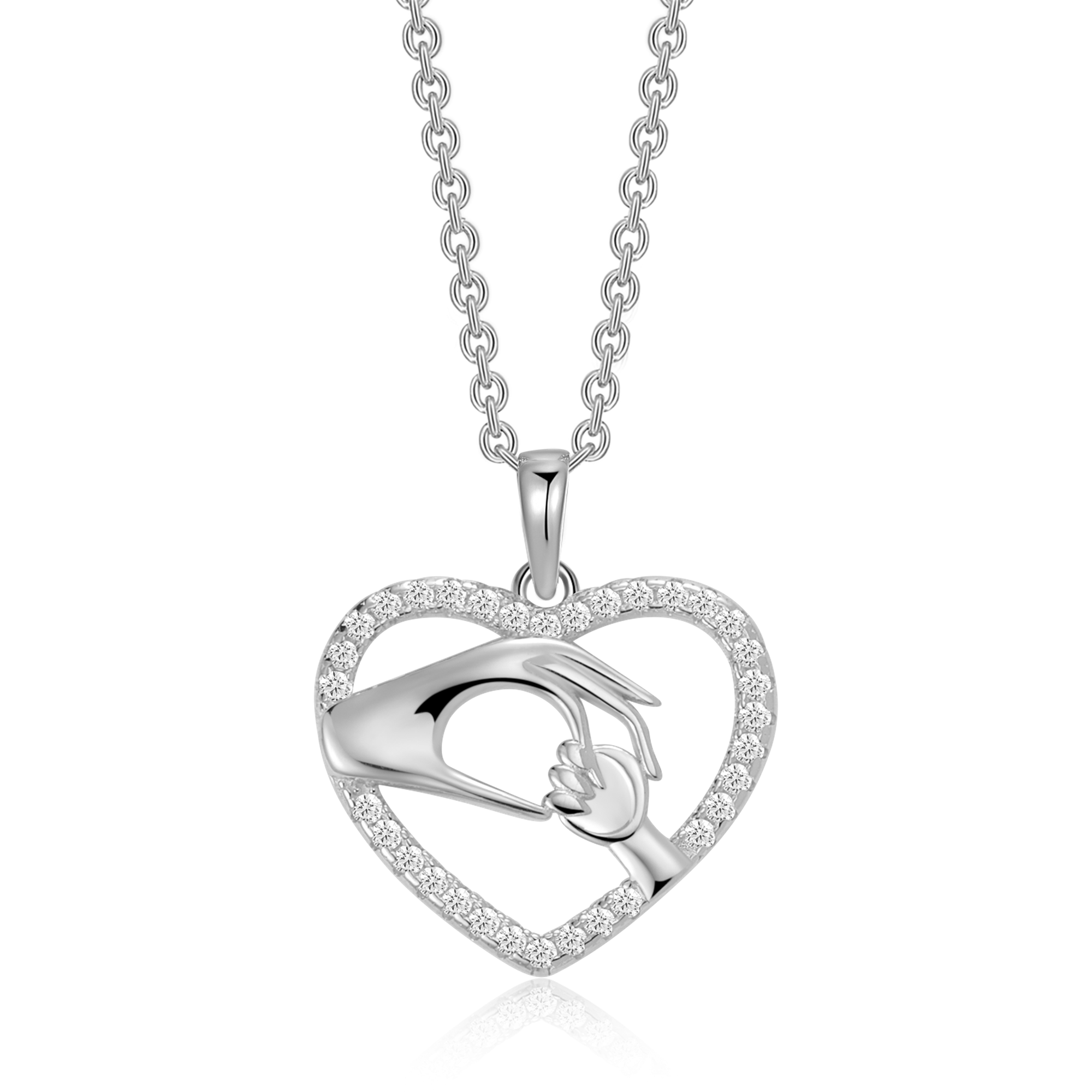 Sølv halskæde rhodineret hjerter med hænder mor og barn med syntetiske cubic zirconia.