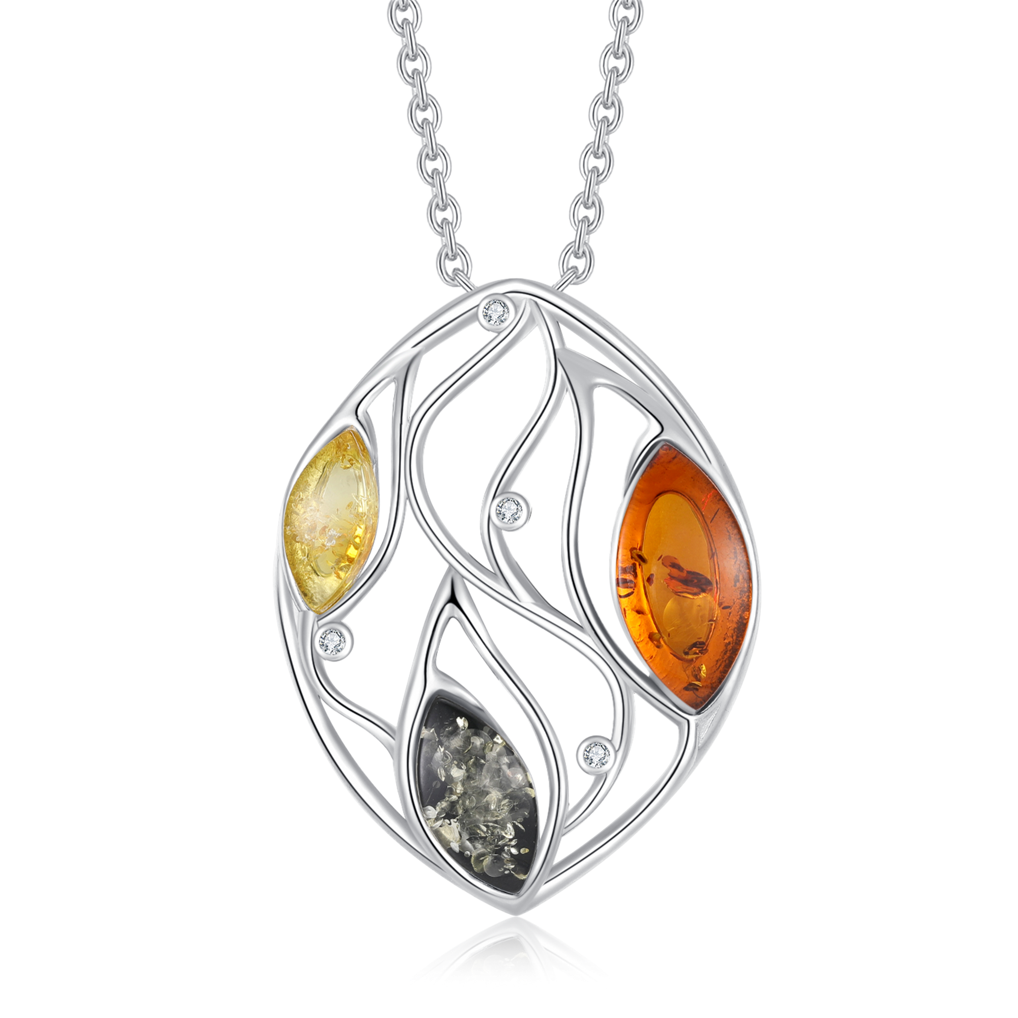 Sølv halskæde rhodineret dråbe med 3 forskellige rav - Lemon, rav, sort agat og syntetiske cubic zirconia.