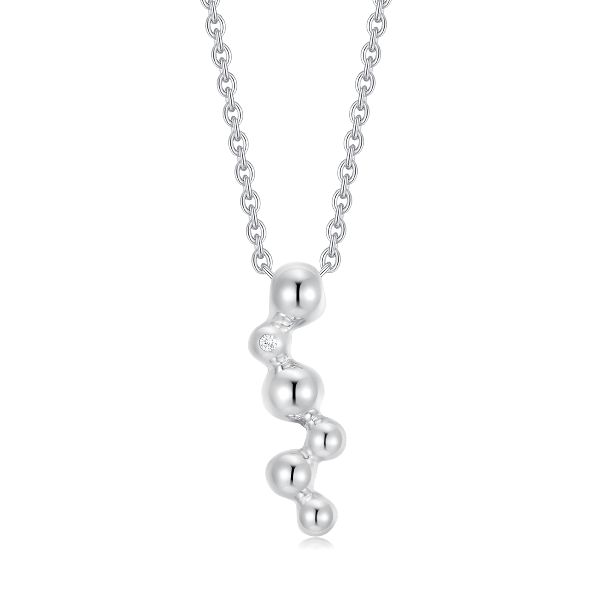 Sølv halskæde rhodineret 6 forskellige kugler med en syntetisk cubic zirconia .