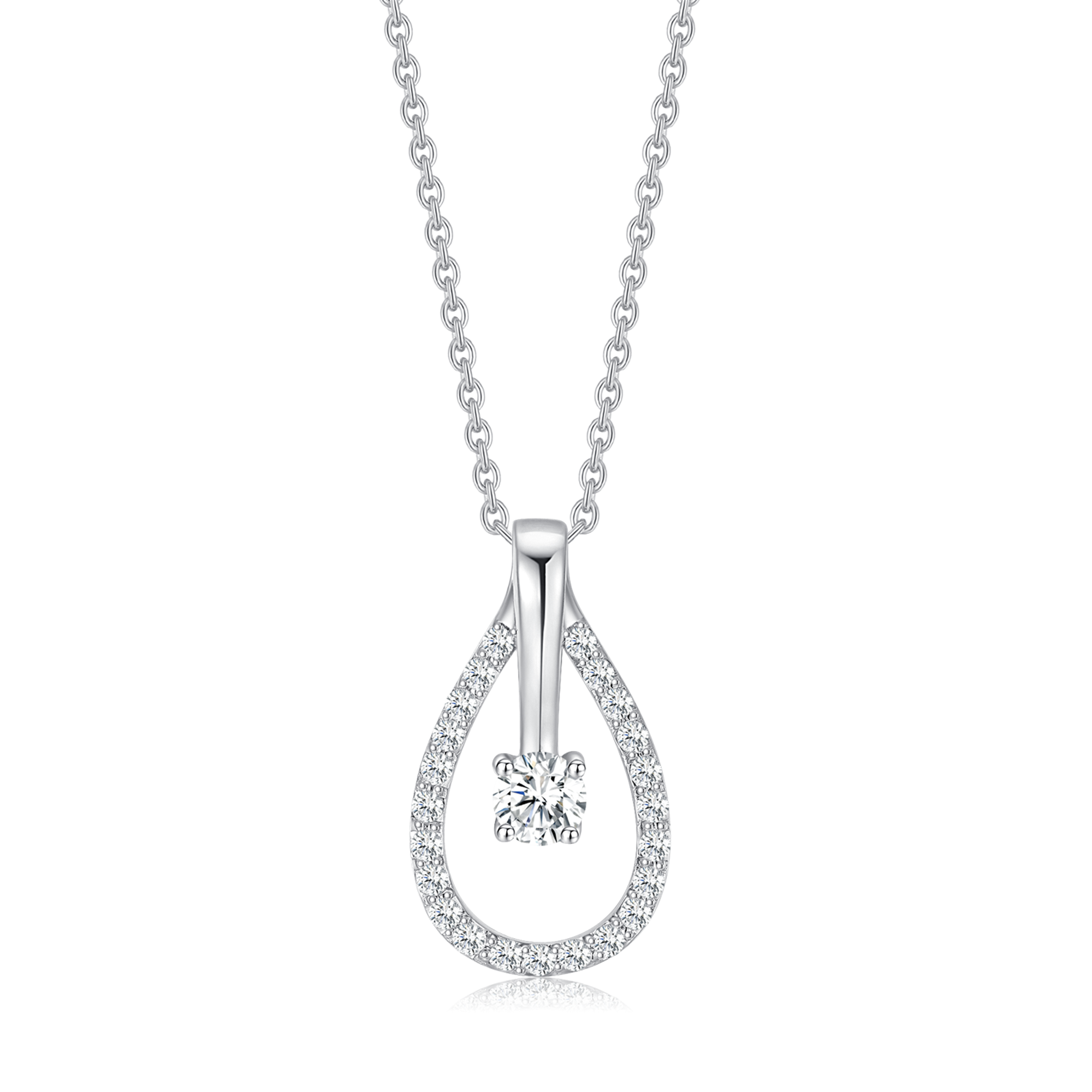 Sølv halskæde rhodineret dråbe med en syntetisk cubic zirconia i midten og kanten.