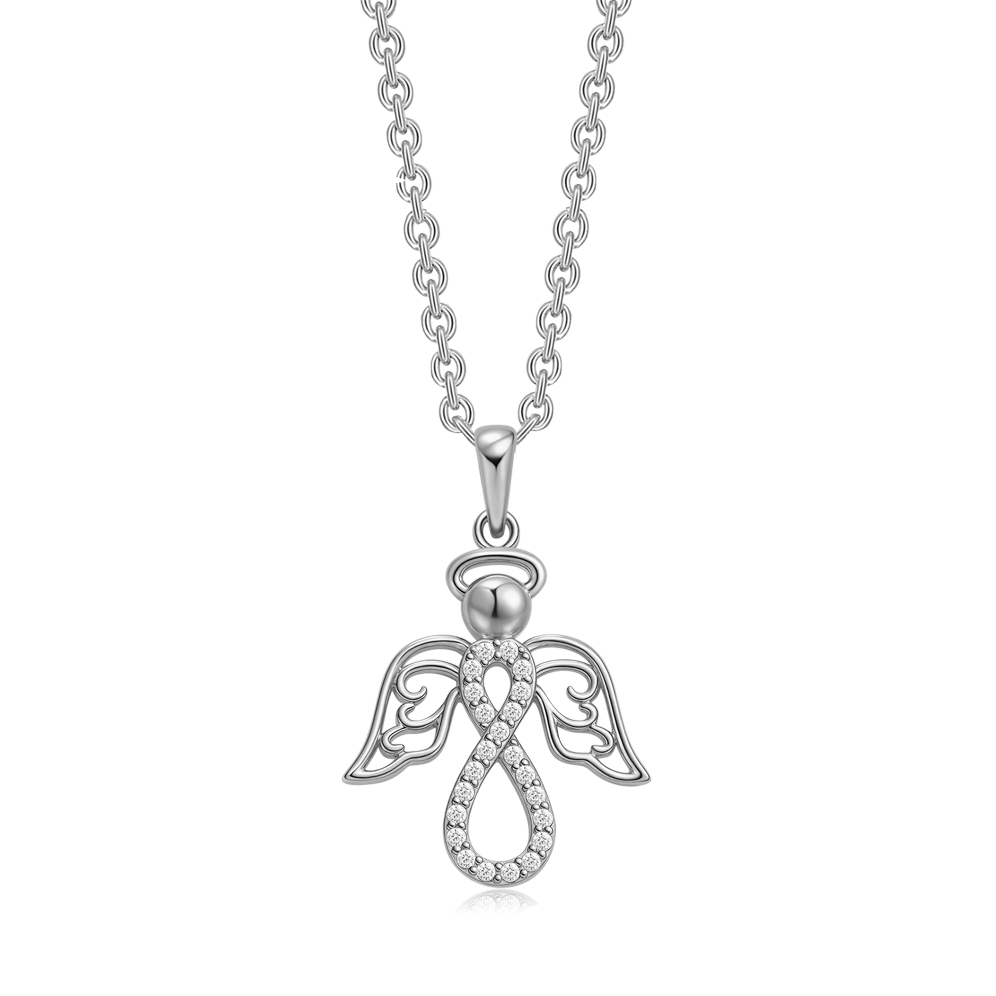 Sølv halskæde rhodineret engle med syntetiske cubic zirconia.