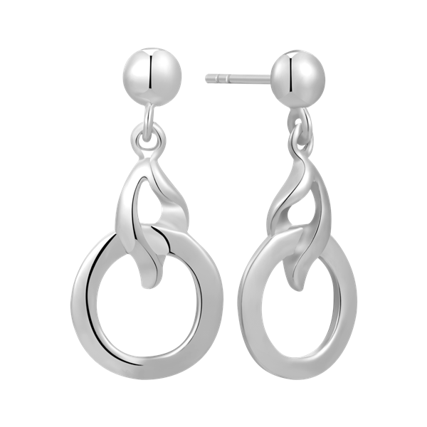 Sølv ørehænger rhodineret cirkel med blad på toppen.