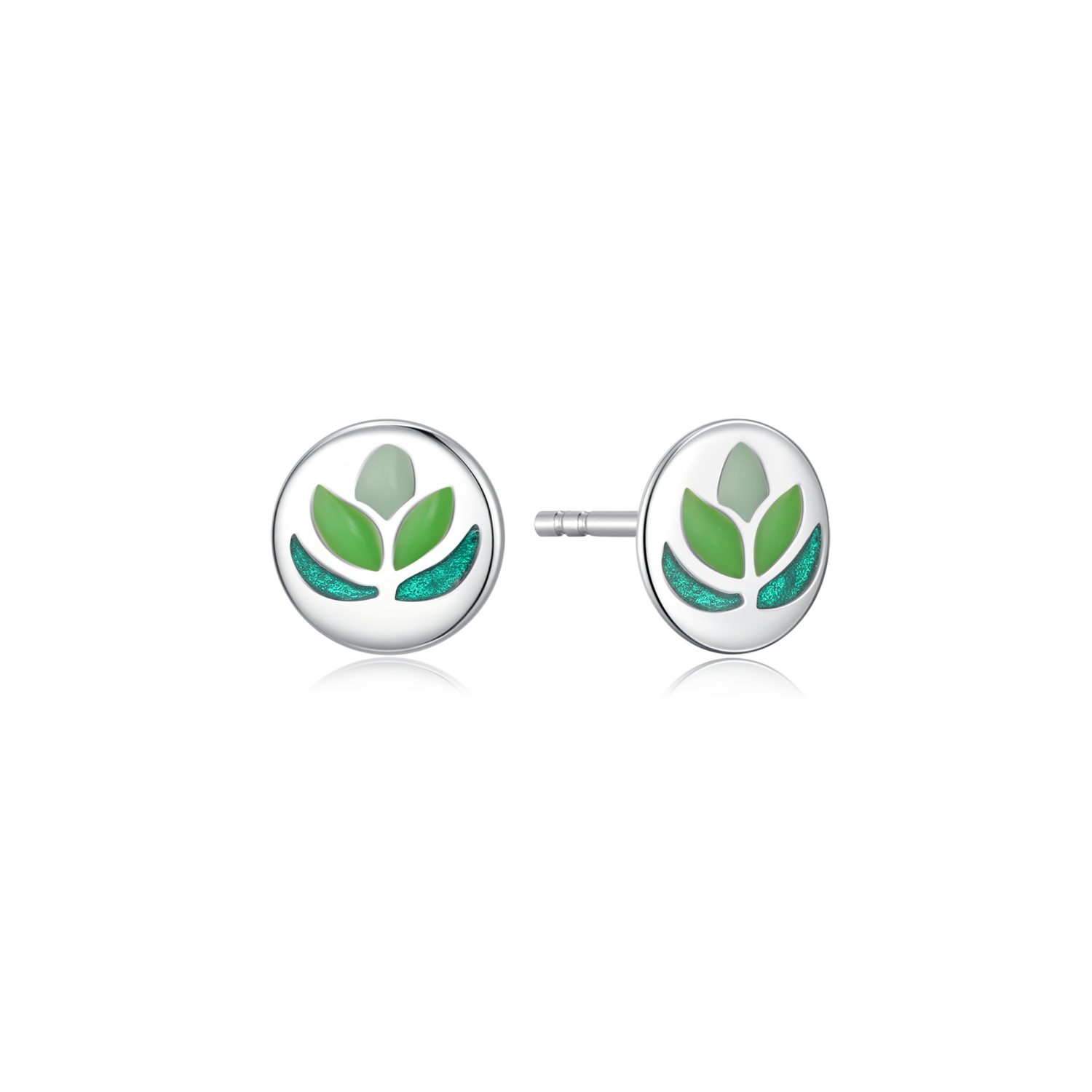 Sølv ørestikker rhodineret cirkel med 3 forskelige grønne farver i blyfri emalje.