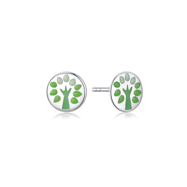 Sølv ørestikker rhodineret cirkel med grøn livets træ blyfri emalje.