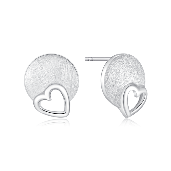 Sølv ørestikker rhodineret mat cirkel med hjerte i blank.