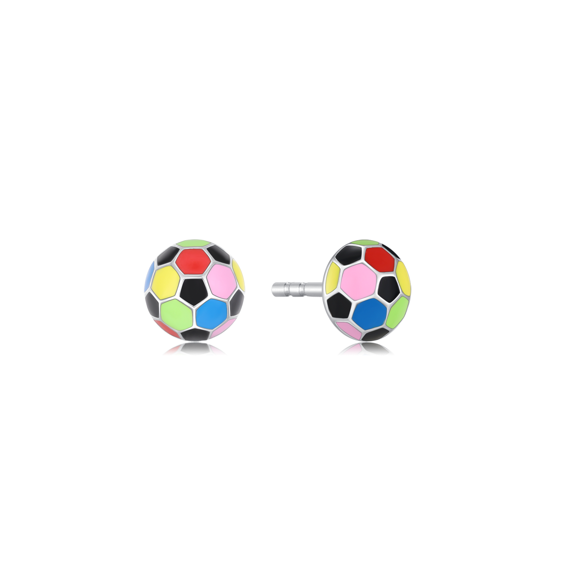Sølv ørestikker rhodineret fodbold i multi blyfri emalje.