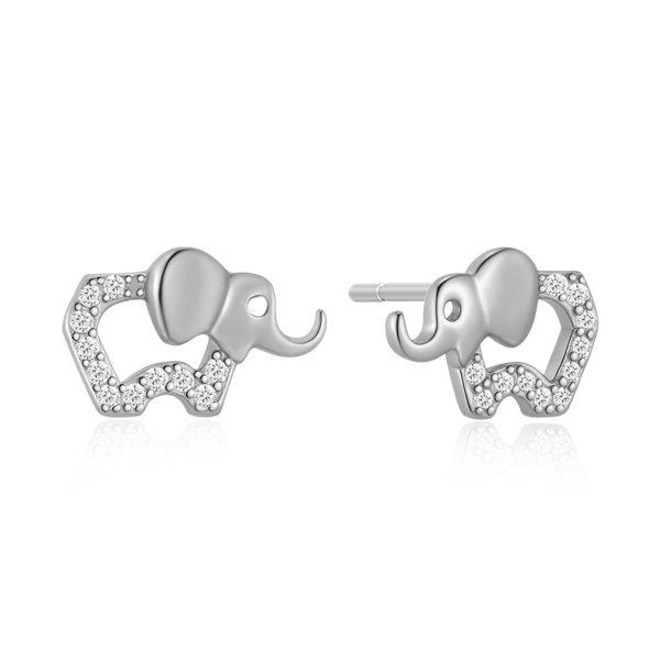 Sølv ørestikker rhodineret elefant med syntetiske cubic zirconia