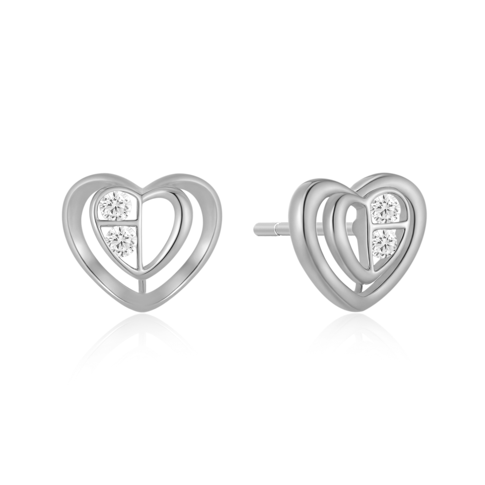 Sølv ørestikker rhodineret hjerte med syntetiske cubic zirconia.