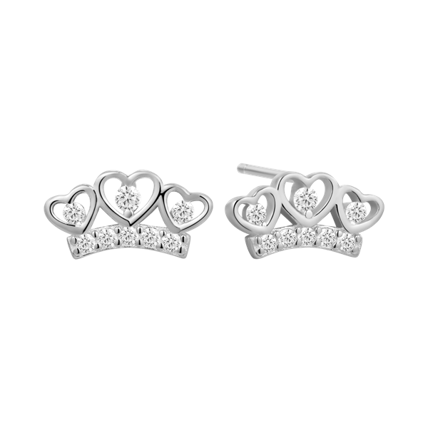 Sølv ørestikker rhodineret krone med 3 hjerter og syntetiske cubic zirconia