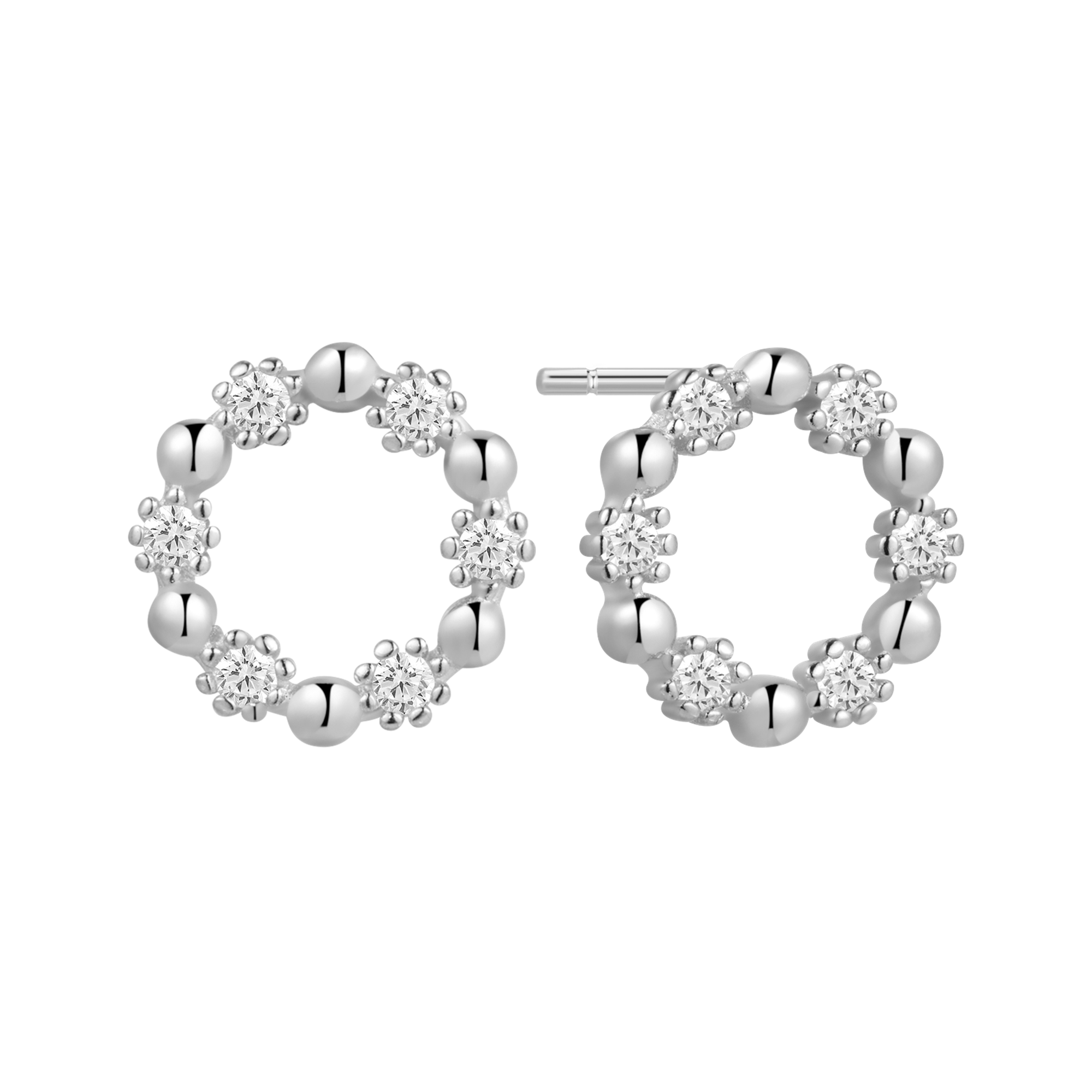 Sølv ørestikker rhodineret cirkel med syntetiske cubic zirconia rundt om kanten.