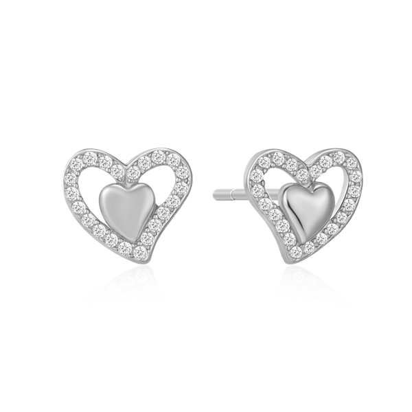 Sølv ørestikker rhodineret skæv dobbelt hjerte med syntetiske cubic zirconia