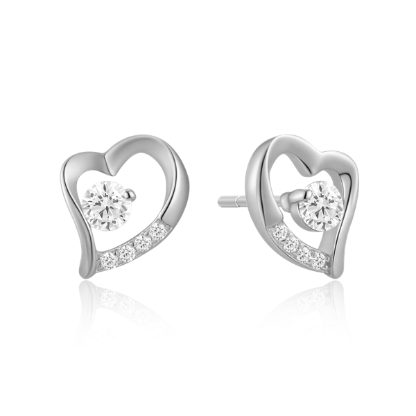 Sølv ørestikker rhodineret skæv hjerte med syntetiske cubic zirconia