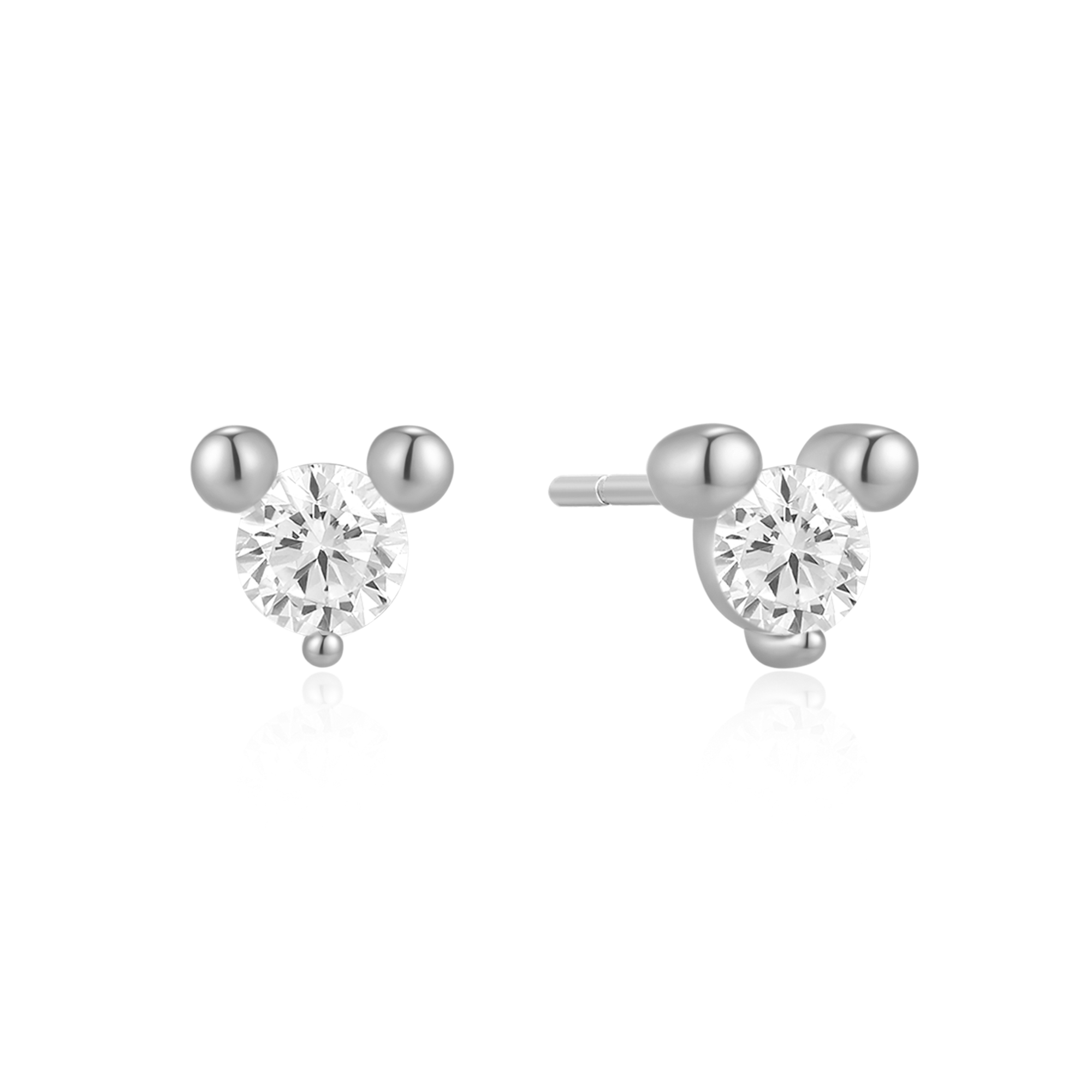 Sølv ørestikker rhodineret en syntetisk cubic zirconia i 3 grabber.