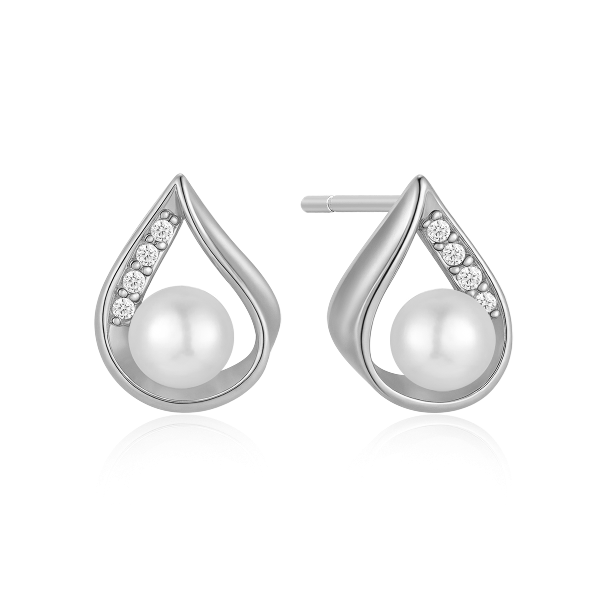 Sølv ørestikker rhodiner dråbe med en ferskvandsperle og syntetiske cubic zirconia.