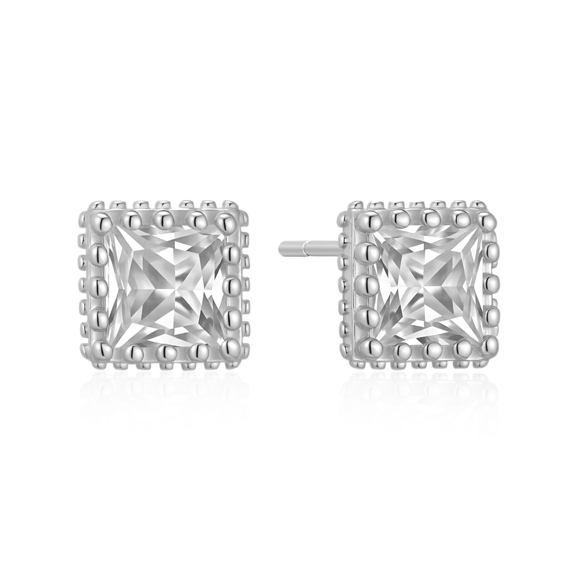 Sølv ørestikker rhodineret firkant med syntetisk cubic zirconia og små prikker i kanten.