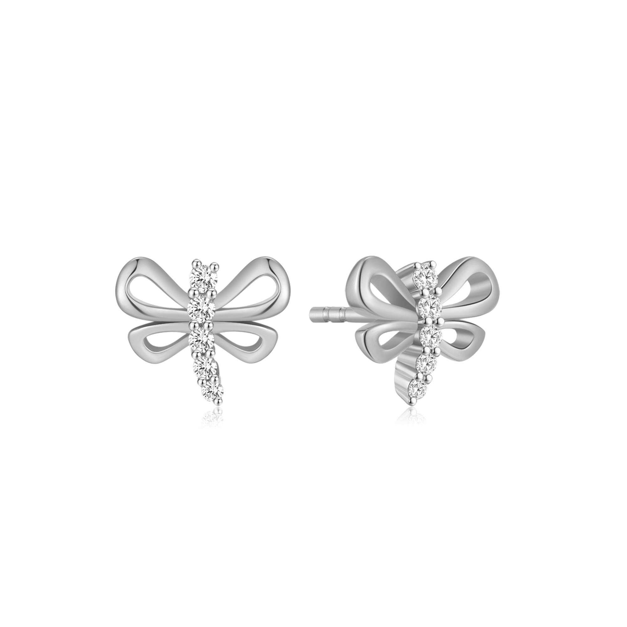 Sølv ørestikker rhodineret sommerfulg med syntetiske cubic zirconia på kroppen.
