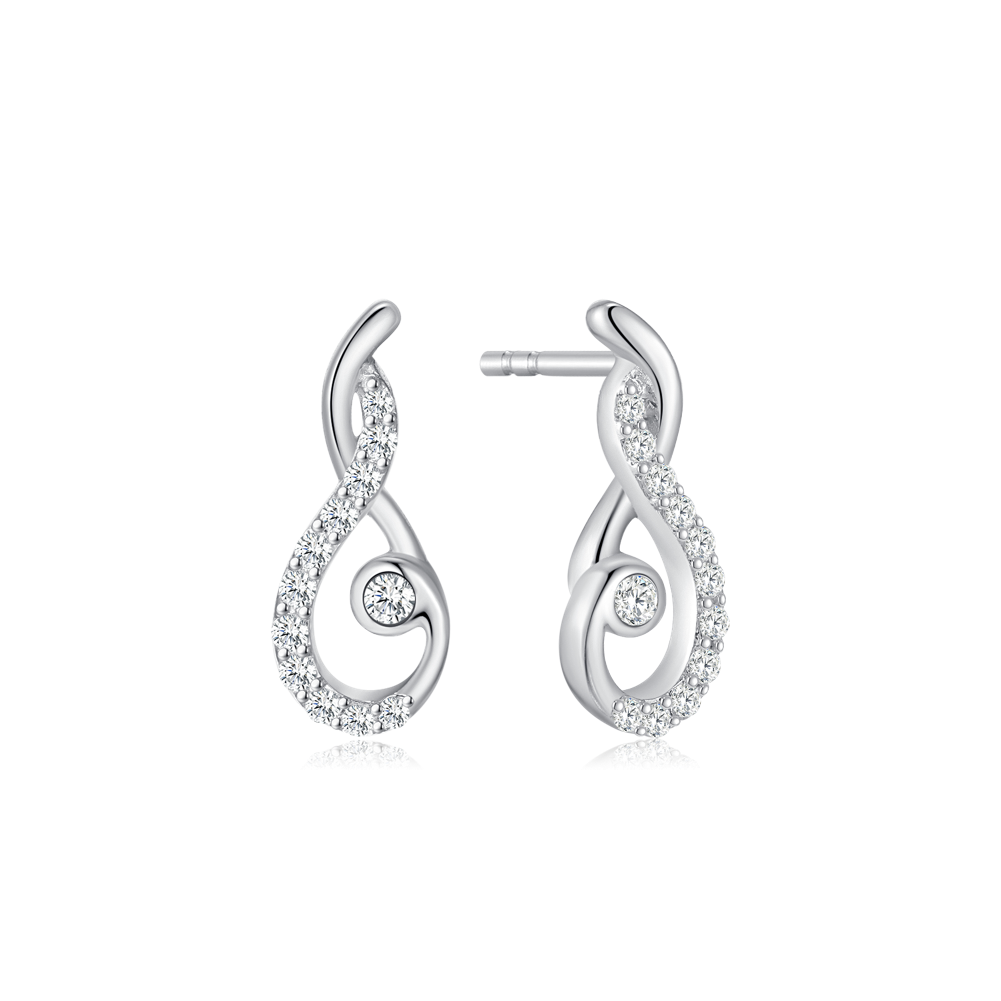 Sølv ørestikker rhodineret dråbe med flettet på toppen og en syntetisk cubic zirconia i midten og i kanten.