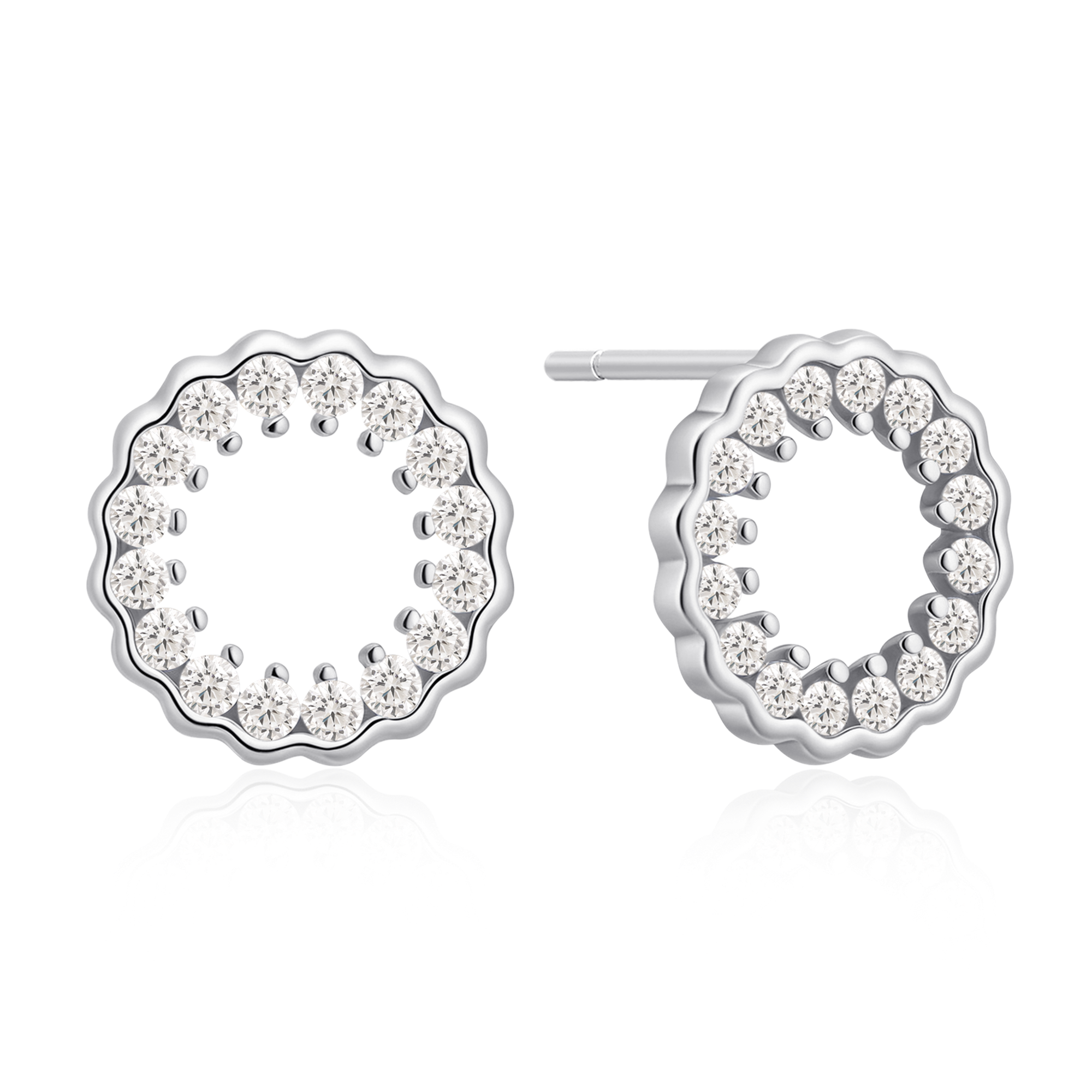 Sølv ørestikker rhodineret cirkel med syntetiske cubic zirconia.