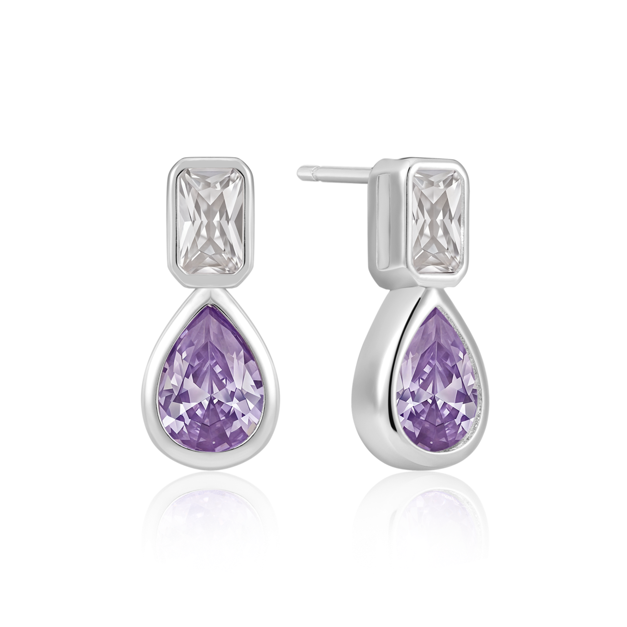 Sølv ørestikker rhodineret en syntetisk cubic zirconia og en dråbe med synt. ametyst.