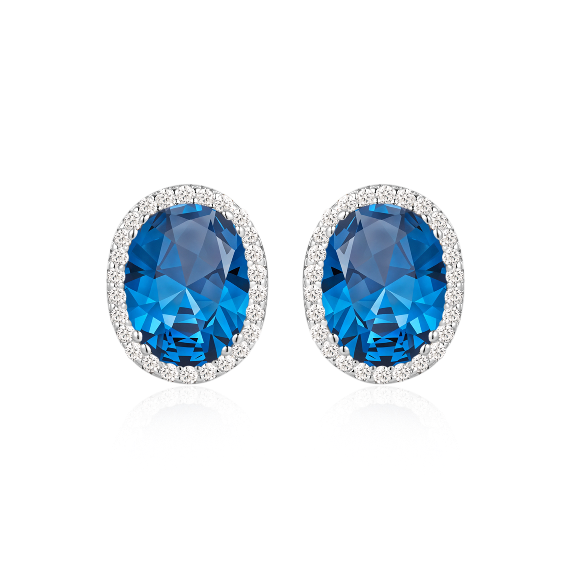 Sølv ørestikker rhodineret oval med syntetiske london blå topas med syntetiske cubic zirconia rundt om.