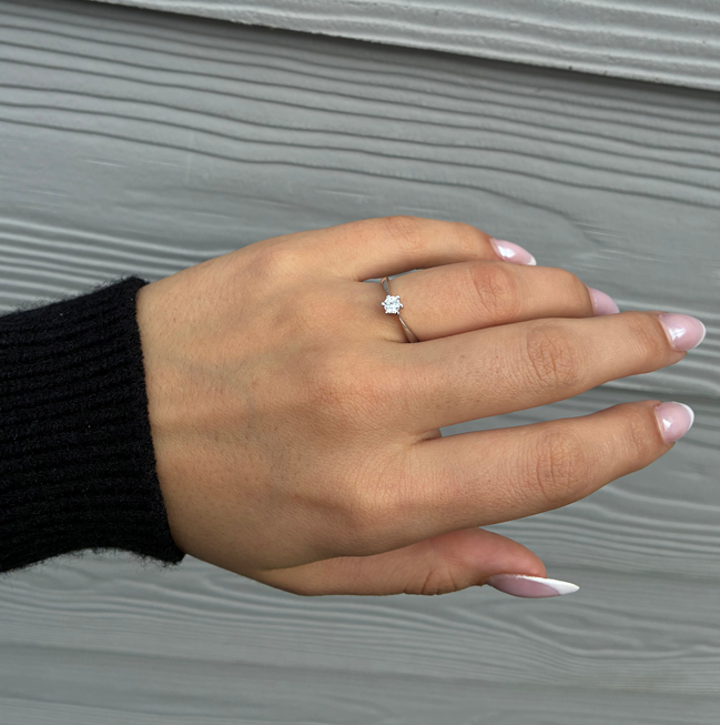 Sølv ring rhodineret med 4 mm syntetisk cubic zirconia i 6 grabber.