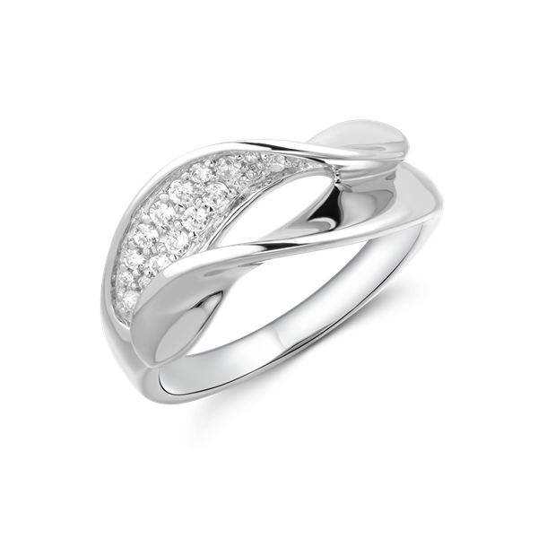 Sølv ring rhodineret skæv blad med syntetiske cubic zirconia.