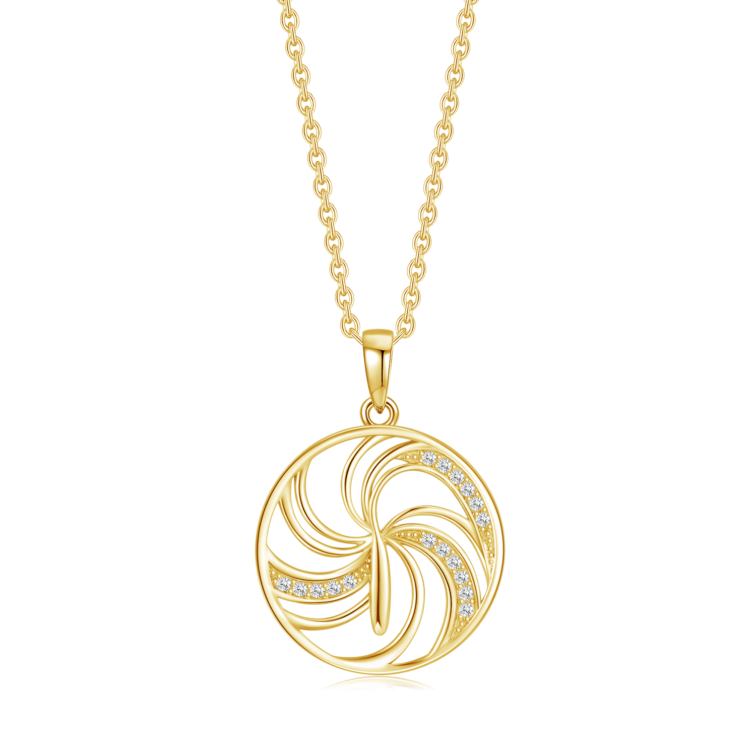 Sølvforgyldt halskæde cirkel med mønster og streger med syntetiske cubic zircornia.