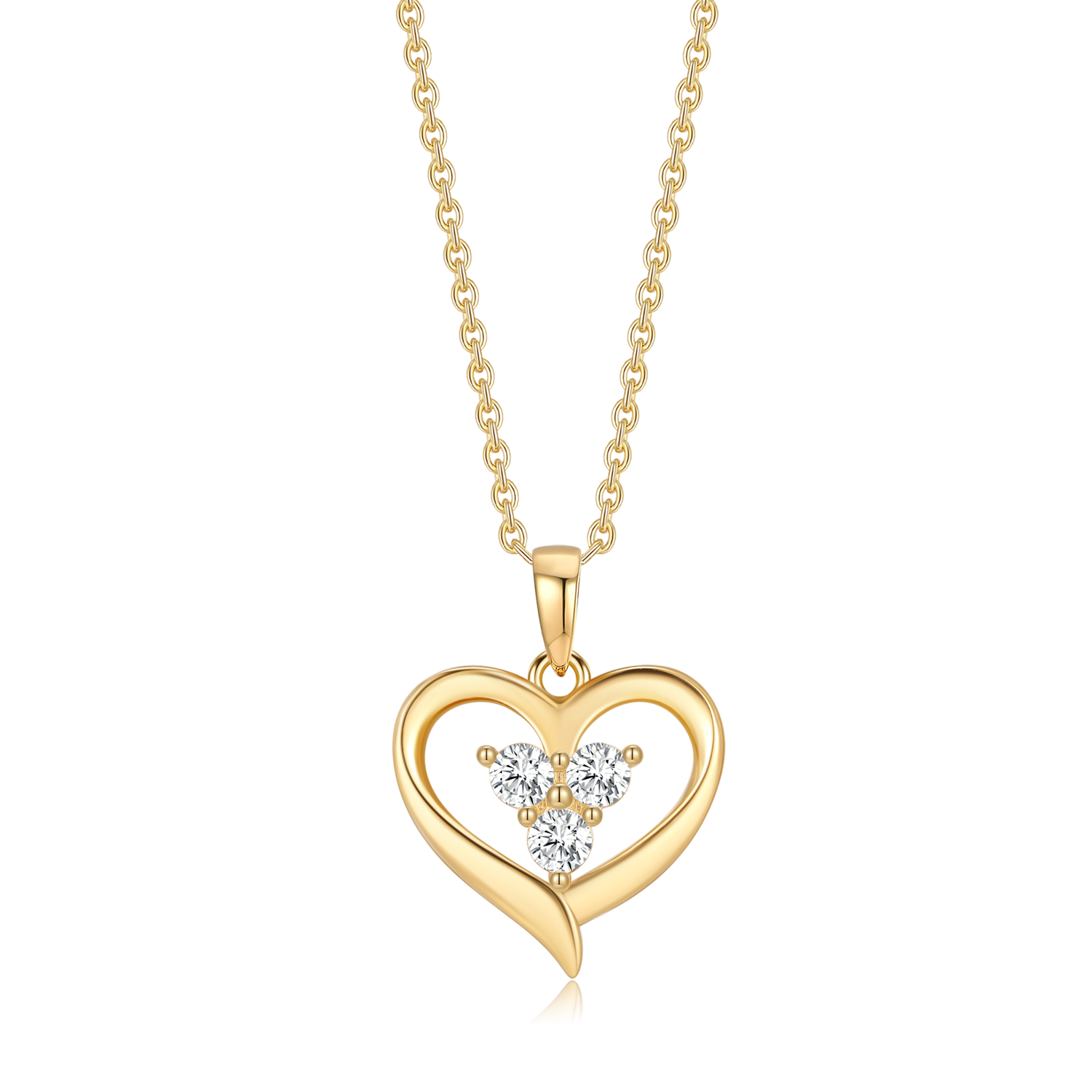Sølvforgyldt halskæde hjerte med 3 syntetiske cubic zircornia i midten.