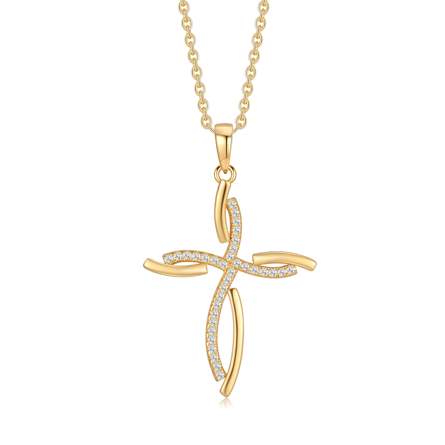 Sølvforgyldt halskæde kors af syntetisk cubic zircornia med 4 streger omkring.