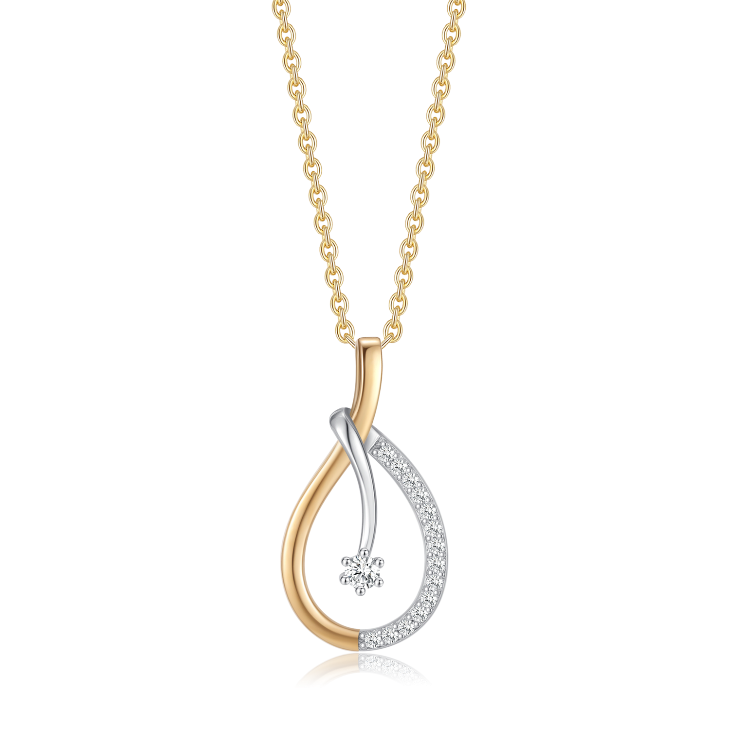 Sølvforgyldt/rhodineret halskæde dråbe med en syntetiske cubic zirconia i midten og i kanten i den ene side.