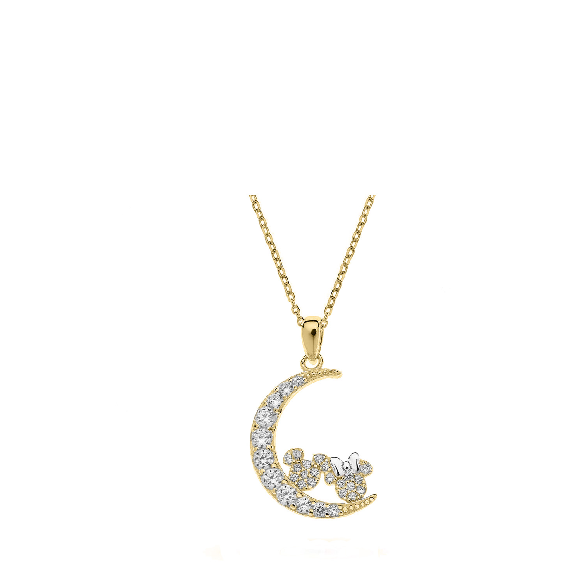Sølvforgyldt halskæde måne med Mickey/Minnie Mouse med syntetiske cubic zirconia.