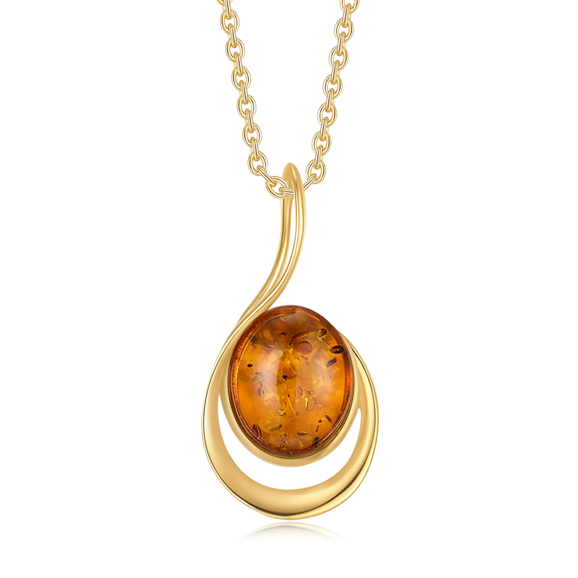 Sølvforgyldt halskæde rav i ring med ring omkring.