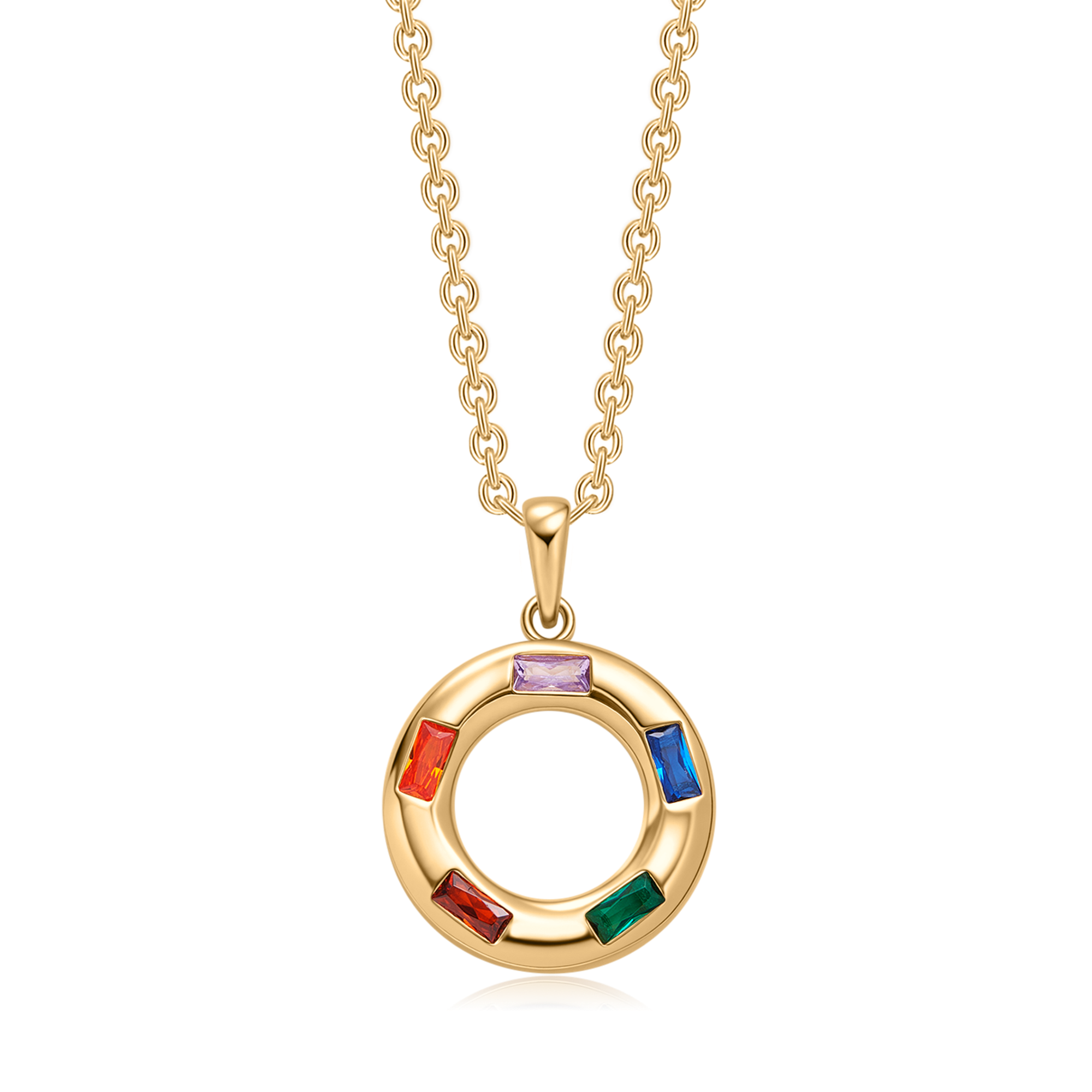 Sølvforgyldt halskæde cirkel med syntetiske cubic zirconia farver sten.