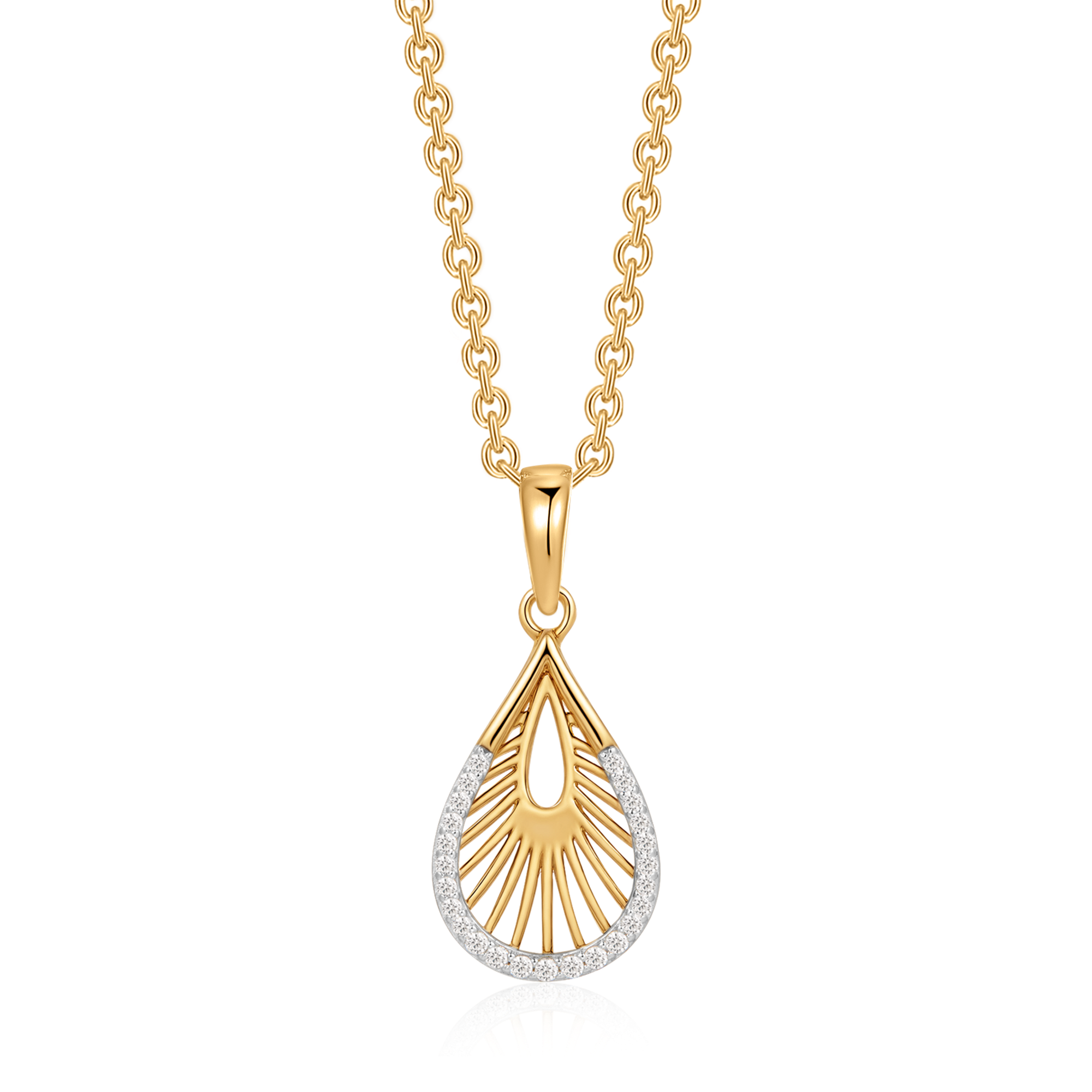 Sølvforgyldt halskæde dråbe med streger og syntetiske cubic zirconia.