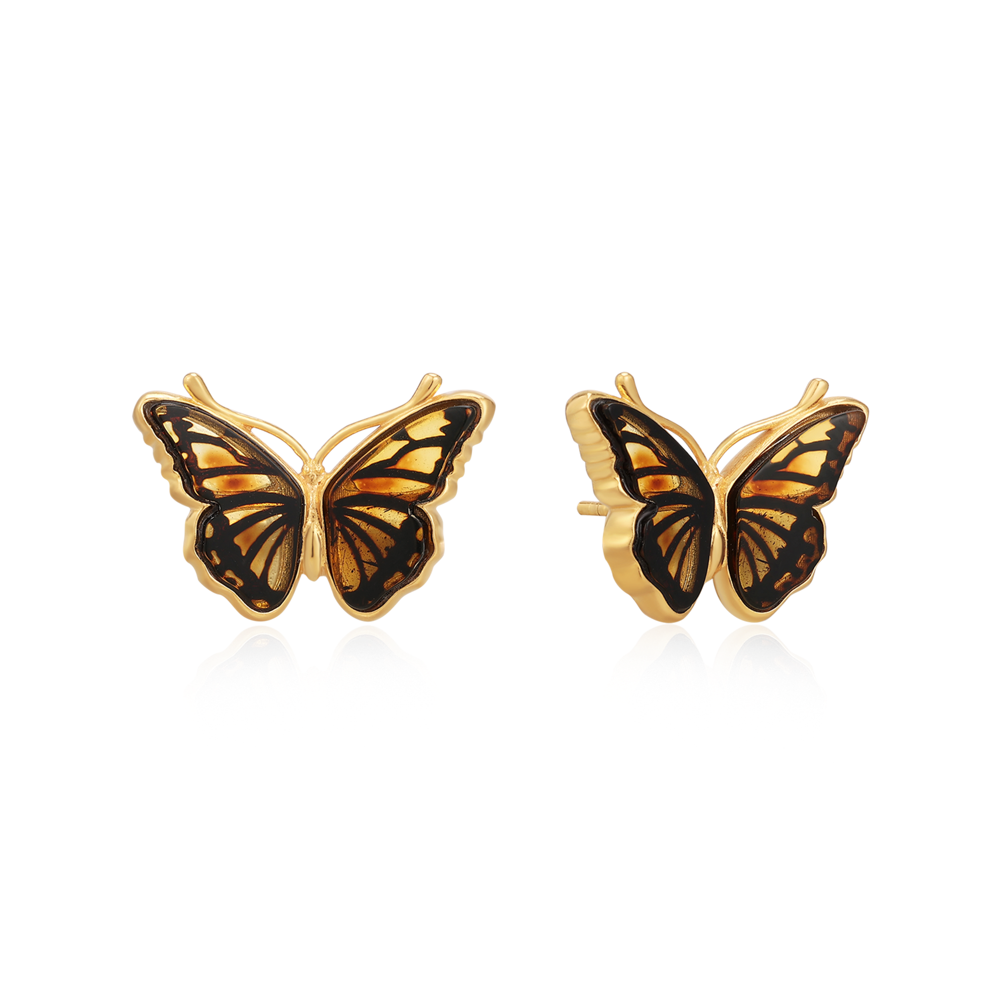 Sølvforgyldt ørehængere sort sommerfugl med rav.