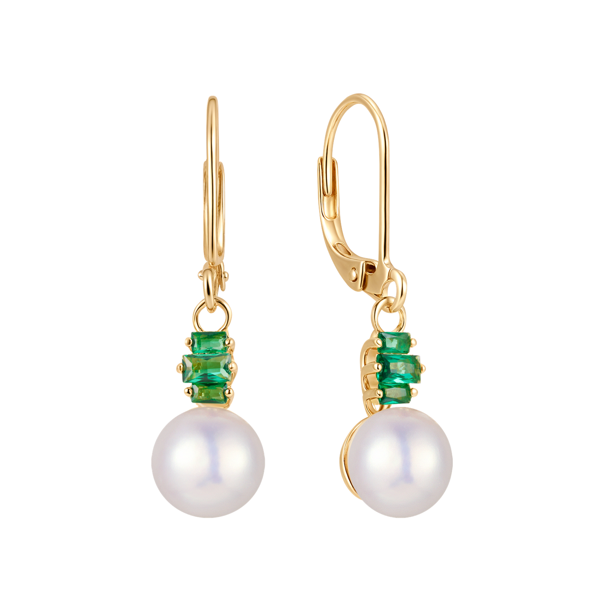 Sølvforgyldt ørehænger 3 syntetiske smaragd med ferskvandsperle.