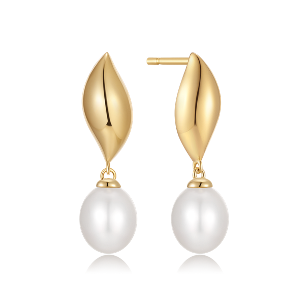 Sølvforgyldt ørestikker oval øje med ferskvandsperle i bunden.