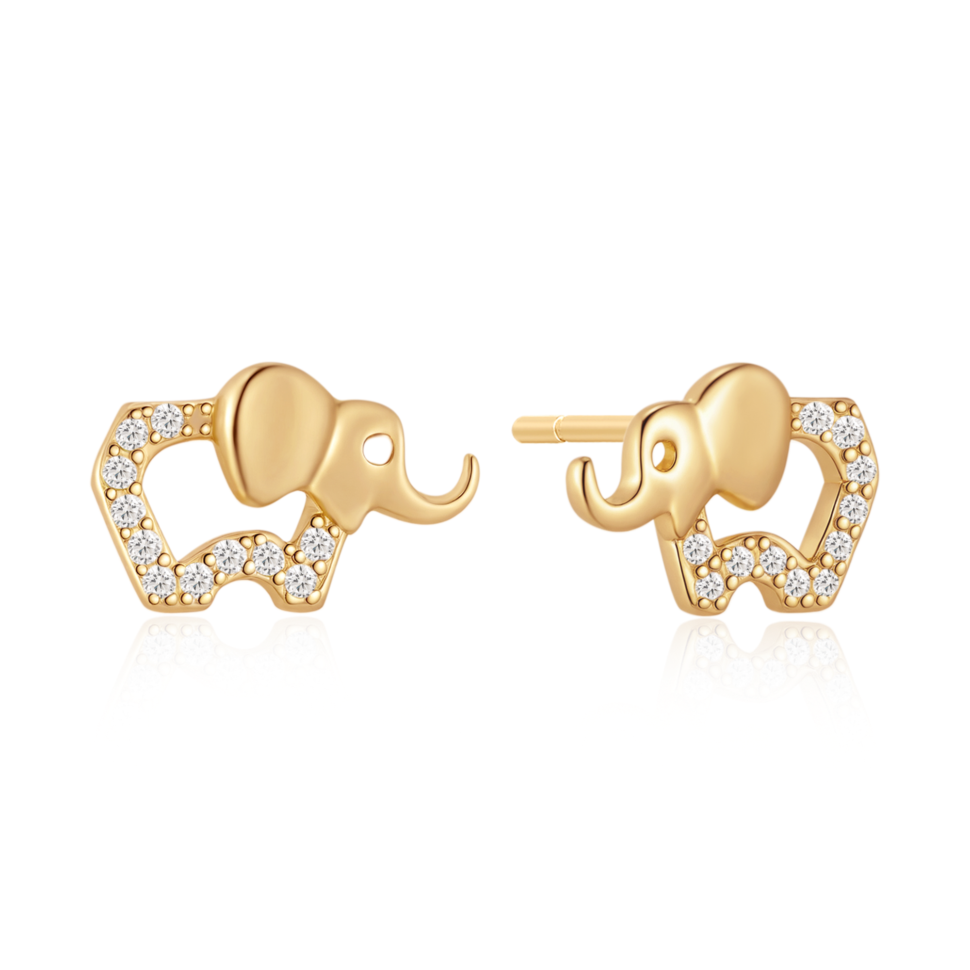 Gold elephant-shaped earrings with sparkling stones on the body, designed by Støvring Design.